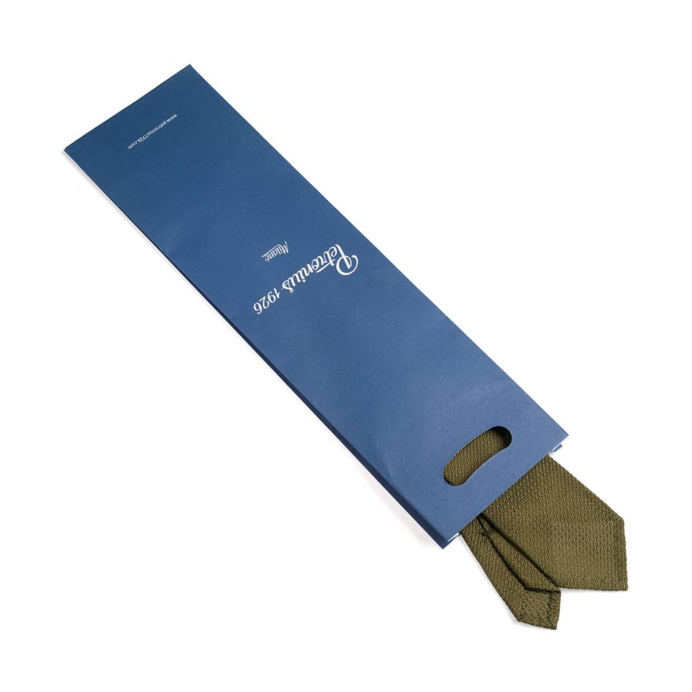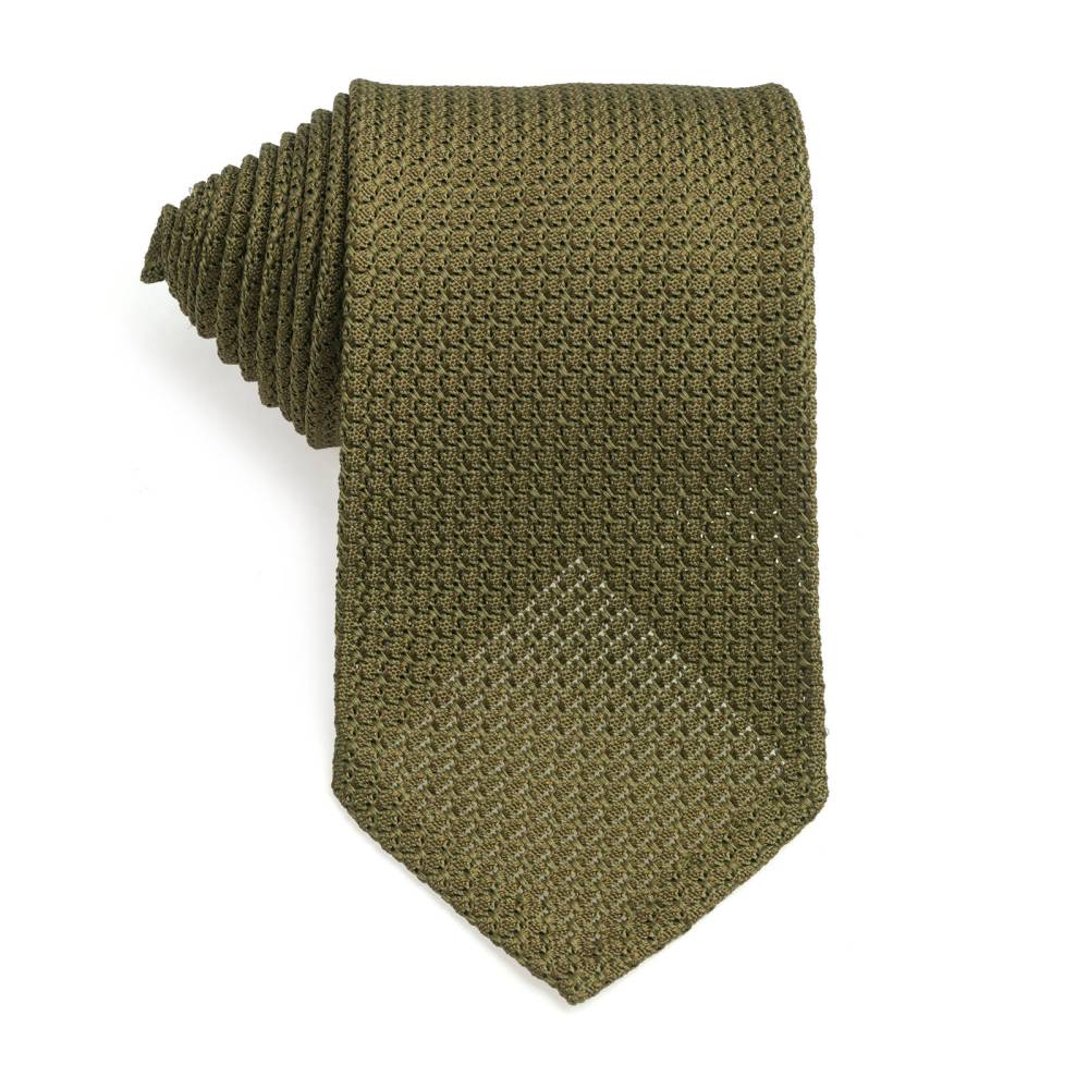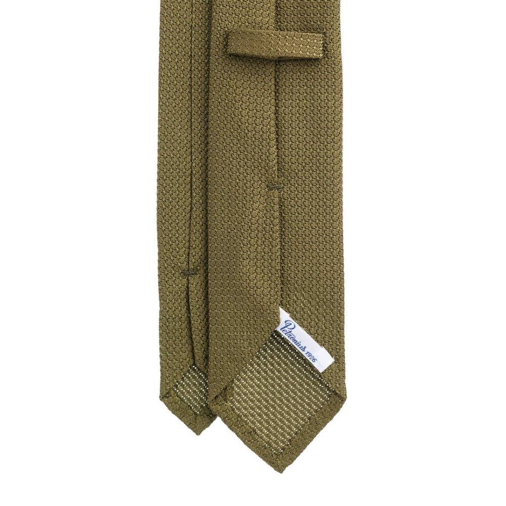 Классический однотонный мужской галстук Petronius из зелёного шёлка-гренадина высшего качества. Заслуживает внимания фактура ткани: для пошива этого галстука использован гренадин крупного плетения — ит. garza grossa. Поскольку материал «увесистый», подкладки у галстука нет, а его края аккуратно подшиты вручную. Такой галстук хорошо сочетается как со строгим тёмно-серым или тёмно-синим костюмом, так и с фактурным непарным пиджаком или даже курткой.