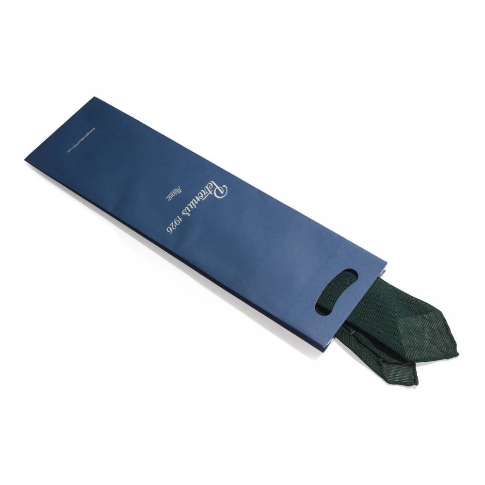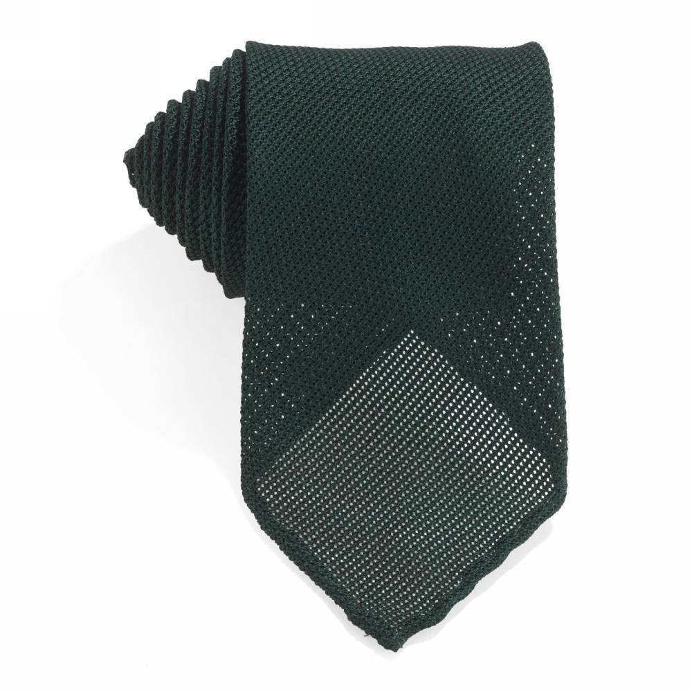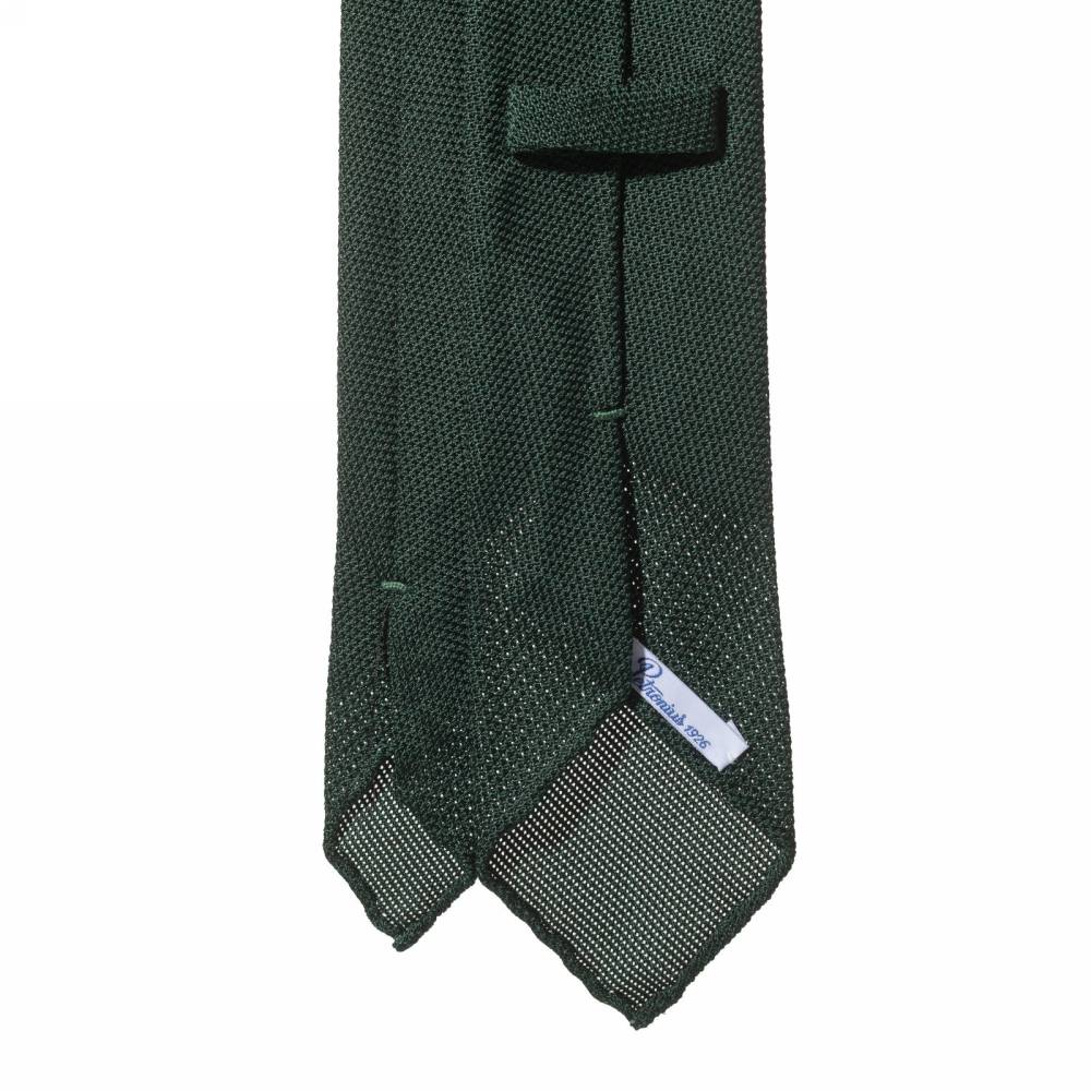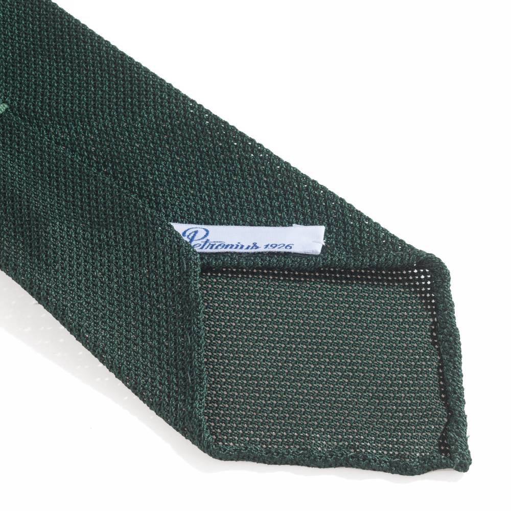 Классический однотонный мужской галстук Petronius. Выполнен в три сложения из тёмно-зелёного шёлка-гренадина высшего качества. Края подшиты вручную (англ. hand rolled edges). Заслуживает внимания фактура ткани: для пошива использован гренадин мелкого плетения. Внутренняя подкладка выполнена из шерсти средней плотности. Поэтому галстучный узел приобретает хороший объём и характерную для качественных галстуков складку-ямочку. К галстуку прилагается фирменный подарочный конверт.