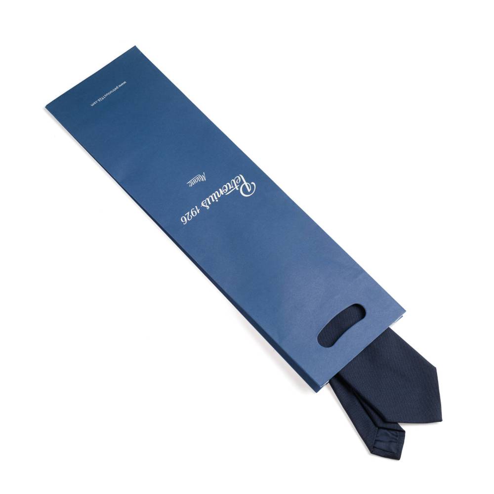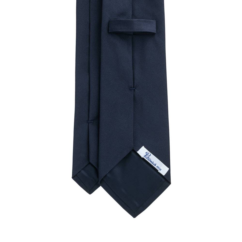 Классический галстук итальянской марки Petronius 1926 полностью изготовлен вручную по всем правилам ремесла. Сшит из матовой шёлковой ткани тёмно-синего цвета. Внутренняя подкладка выполнена из шерсти средней плотности. Поэтому галстучный узел приобретает хороший объём и характерную для качественных галстуков складку. Благодаря сдержанной расцветке такой галстук будет хорошо сочетаться с деловым костюмом в формальной обстановке. К галстуку прилагается фирменный подарочный конверт.