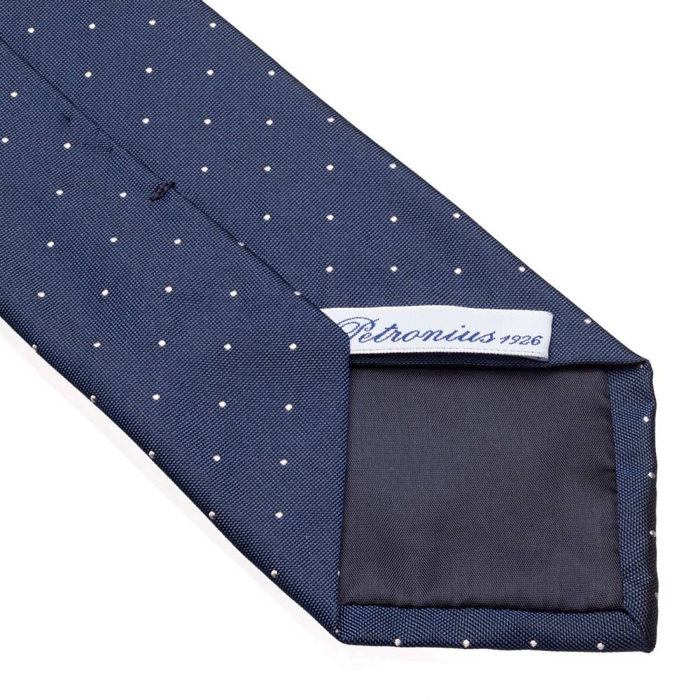 Классический галстук итальянской марки Petronius 1926 полностью изготовлен вручную по всем правилам ремесла. Сшит из нежной шёлковой ткани тёмно-синего цвета с лёгким блеском, украшенной белыми горошенами. Внутренняя подкладка выполнена из шерсти средней плотности. Поэтому галстучный узел приобретает хороший объём и характерную для качественных галстуков складку. Благодаря сдержанной расцветке такой галстук будет хорошо сочетаться с деловым костюмом в формальной обстановке. К галстуку прилагается фирменный подарочный конверт.