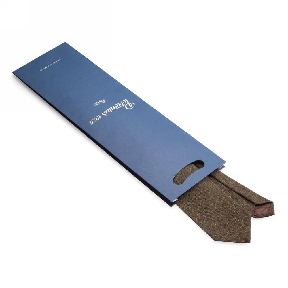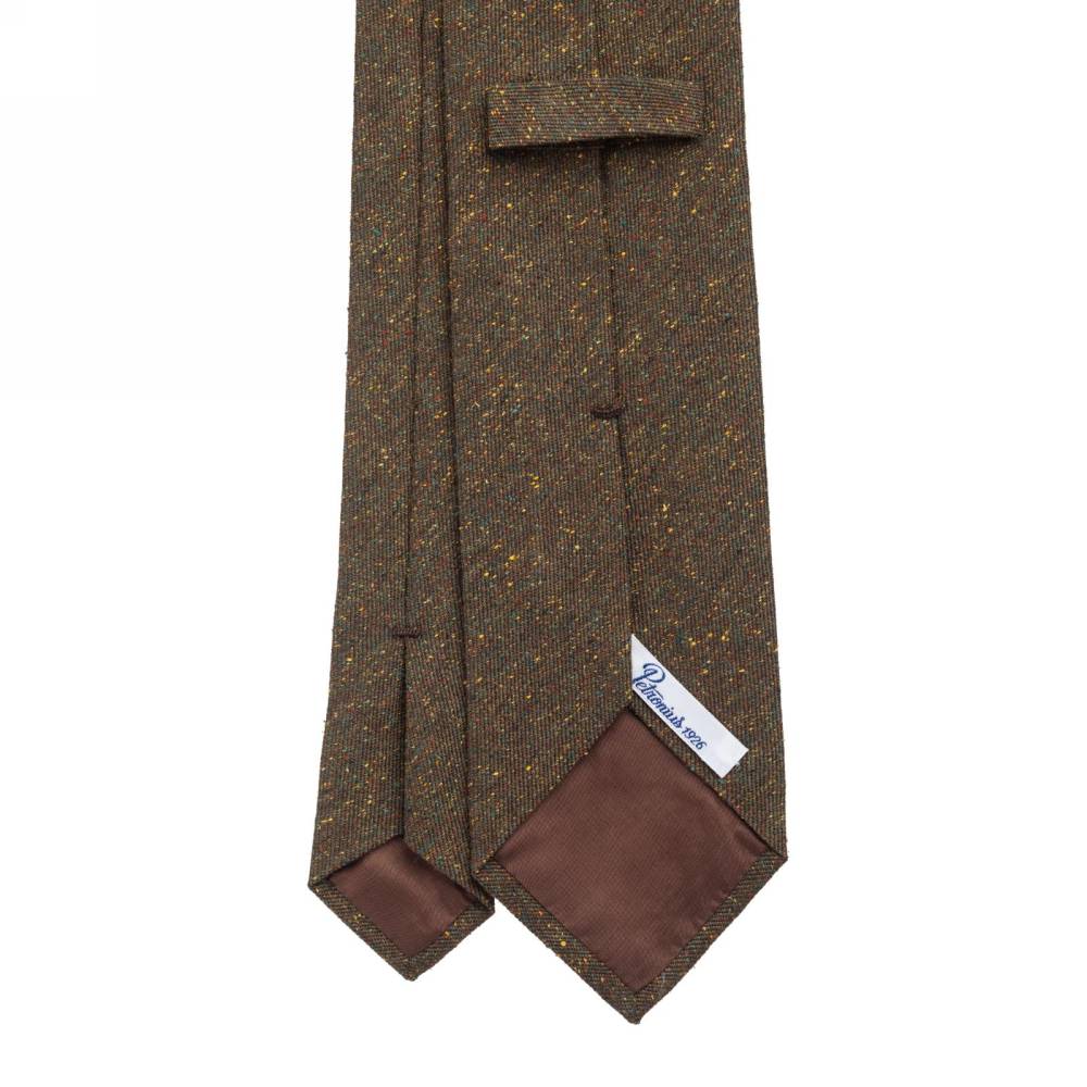 Оригинальный классический галстук итальянской марки Petronius 1926 полностью изготовлен вручную по всем правилам ремесла. Сшит из плотного шёлка с ярко выраженной фактурой оливкового цвета и вкраплениями нитей других ненавязчивых оттенков. Подкладка галстука выполнена из тонкой натуральной шерсти. Такой галстук превосходно дополнит неформальный костюм из фланели или твида, а также непарные комплекты из фактурных тканей.