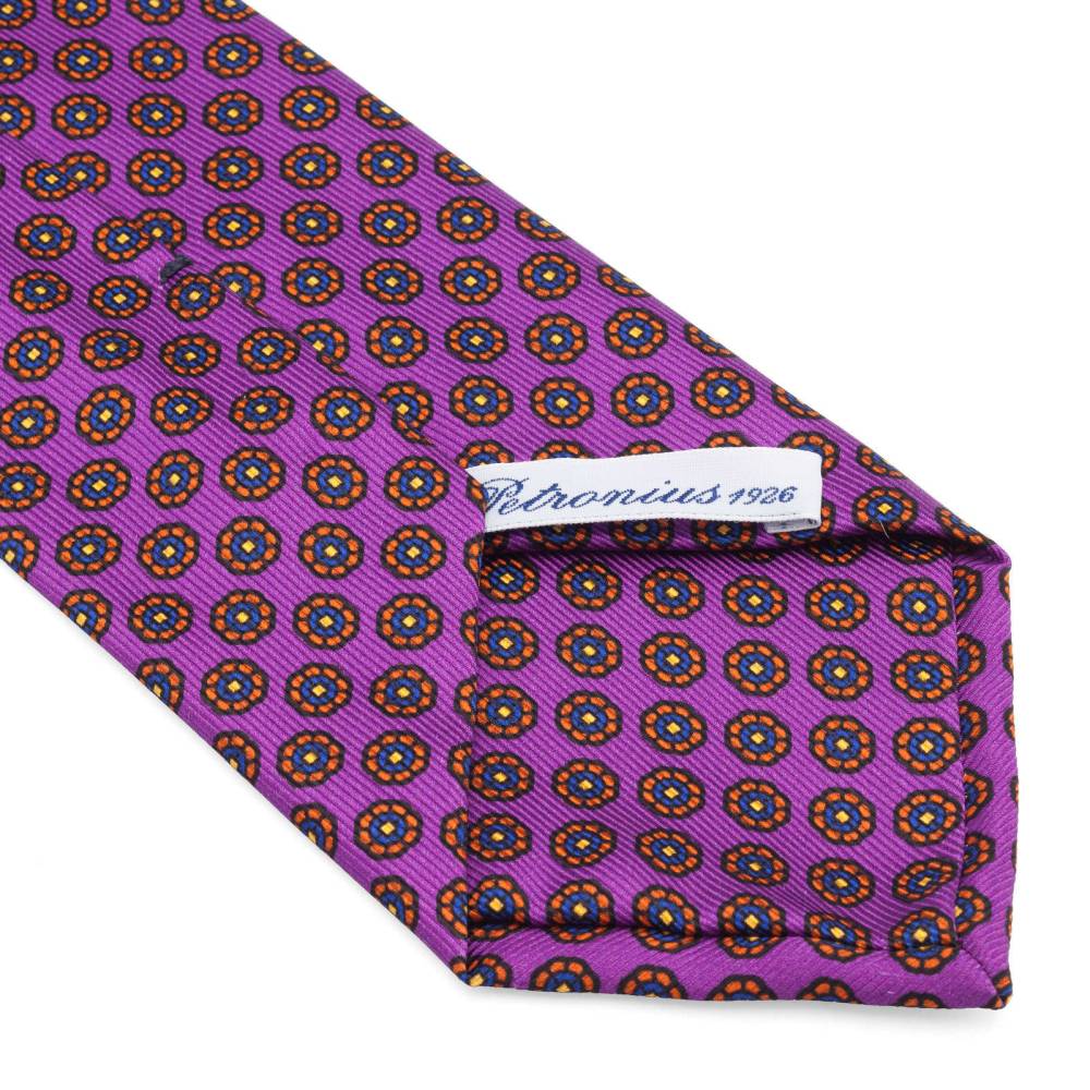 Классический мужской галстук Petronius из шёлковой ткани наивысшего качества. Все операции: от выкройки до окончательной стяжки по центру, выполнены руками нескольких ремесленников в мастерской Petronius в Милане. Больше 80 лет в этом семейном ателье занимаются пошивом роскошных аксессуаров из отборных натуральных тканей. Продукция Petronius представлена в старейших бутиках и универмагах мира, среди которых Barney's и Bergdorf Goodman в Нью-Йорке.