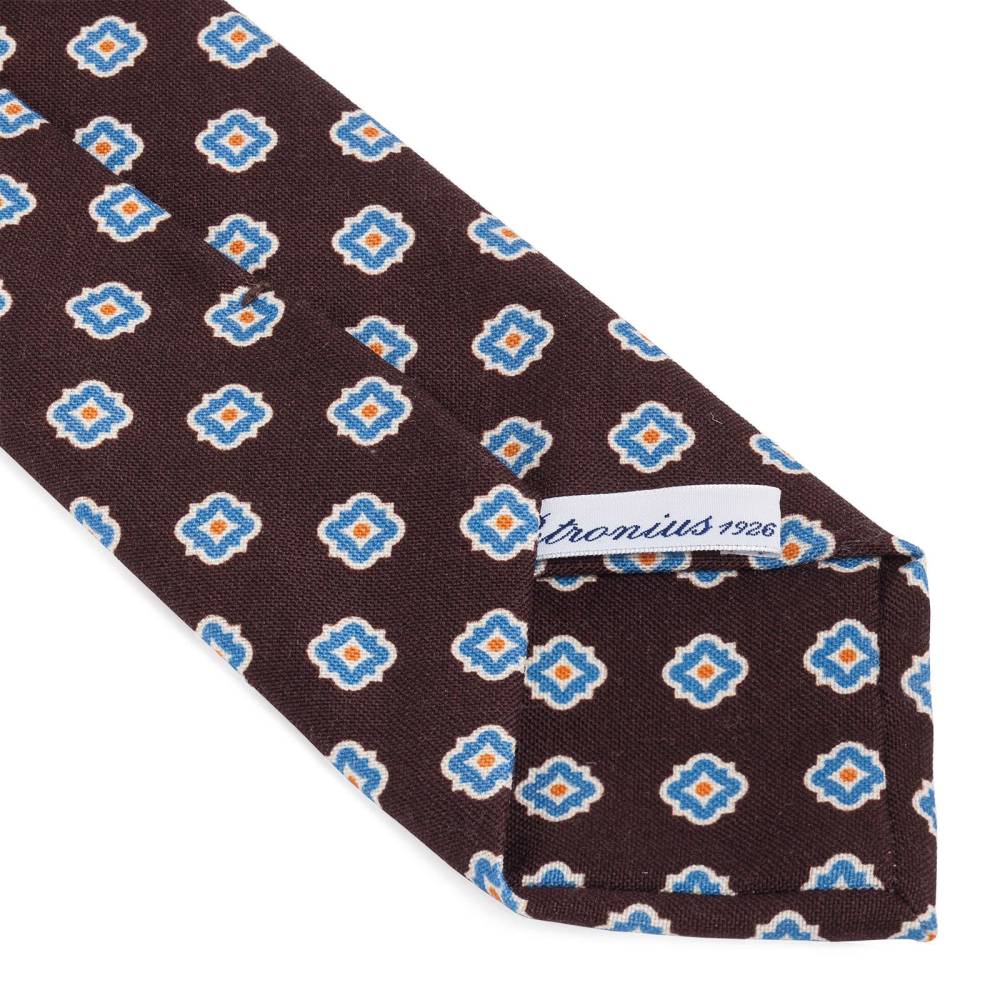 Классический мужской галстук Petronius выполнен из мягкой высококачественной шерсти с добавлением шёлка. Как правило, узел шерстяного галстука лучше держит форму и узор в течении дня, в то время как узел шёлкового галстука может потерять форму. Поэтому ценителям, мы рекомендуем выбирать именно галстуки из шерсти. Все операции: от выкройки до окончательной стяжки по центру, выполнены руками нескольких ремесленников в мастерской Petronius в Милане. Больше 80 лет в этом семейном ателье занимаются пошивом роскошных аксессуаров из отборных натуральных тканей. Продукция Petronius представлена в старейших бутиках и универмагах мира, среди которых Barney's и Bergdorf Goodman в Нью-Йорке.