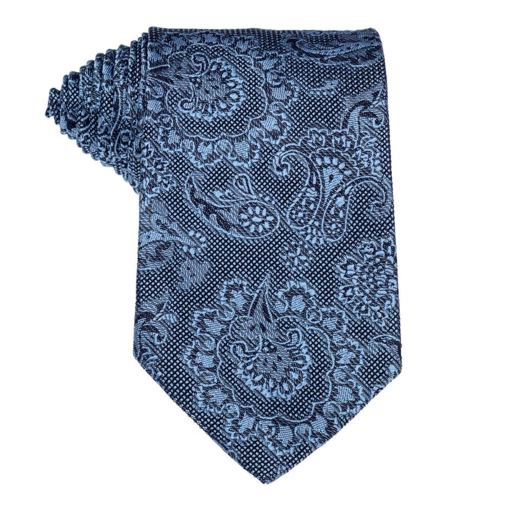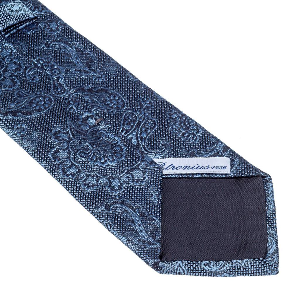 Классический мужской галстук Petronius из плотной голубой жаккардовой шёлковой ткани наивысшего качества с фактурным узором. Прекрасно подходит для торжественных мероприятий. Все операции: от выкройки до окончательной стяжки по центру, выполнены руками нескольких ремесленников в мастерской Petronius в Милане.