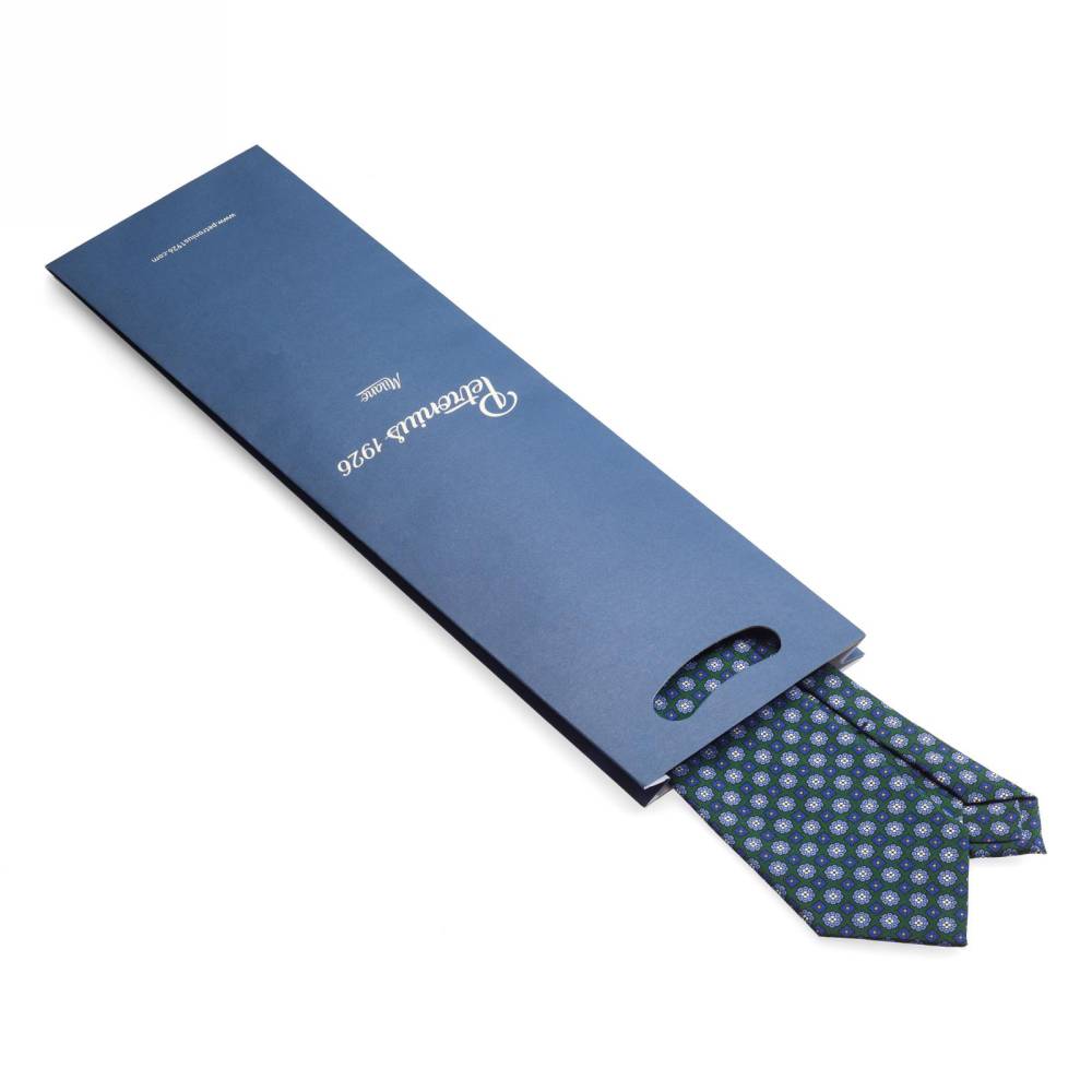 Классический галстук итальянской марки Petronius 1926 полностью изготовлен вручную по всем правилам ремесла. Сшит из тонкой шёлковой ткани с ненавязчивым набивным рисунком по технологии self-tipped. О чем говорит подкладка и такой же ткани что и внешняя часть. Внутренняя подкладка выполнена из шерсти средней плотности. Поэтому галстучный узел приобретает хороший объём и характерную для качественных галстуков складку. Благодаря сдержанной расцветке такой галстук будет хорошо сочетаться как с деловым костюмом, так и непарной двойкой в непринужденном стиле. К галстуку прилагается фирменный подарочный конверт.