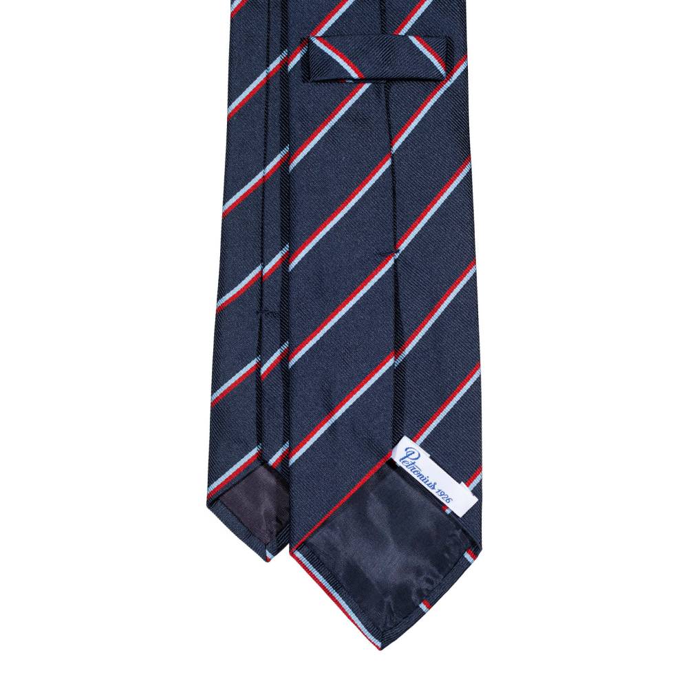 Классический галстук итальянской марки Petronius 1926 полностью изготовлен вручную по всем правилам ремесла. Сшит из чистого репсового шёлка в классическую «полковую» полоску. Внутренняя подкладка выполнена из шерсти средней плотности. Поэтому галстучный узел приобретает хороший объём и характерную для качественных галстуков складку. Благодаря сдержанной расцветке такой галстук будет хорошо сочетаться как с деловым костюмом, так и непарной двойкой в непринужденном стиле. К галстуку прилагается фирменный подарочный конверт.