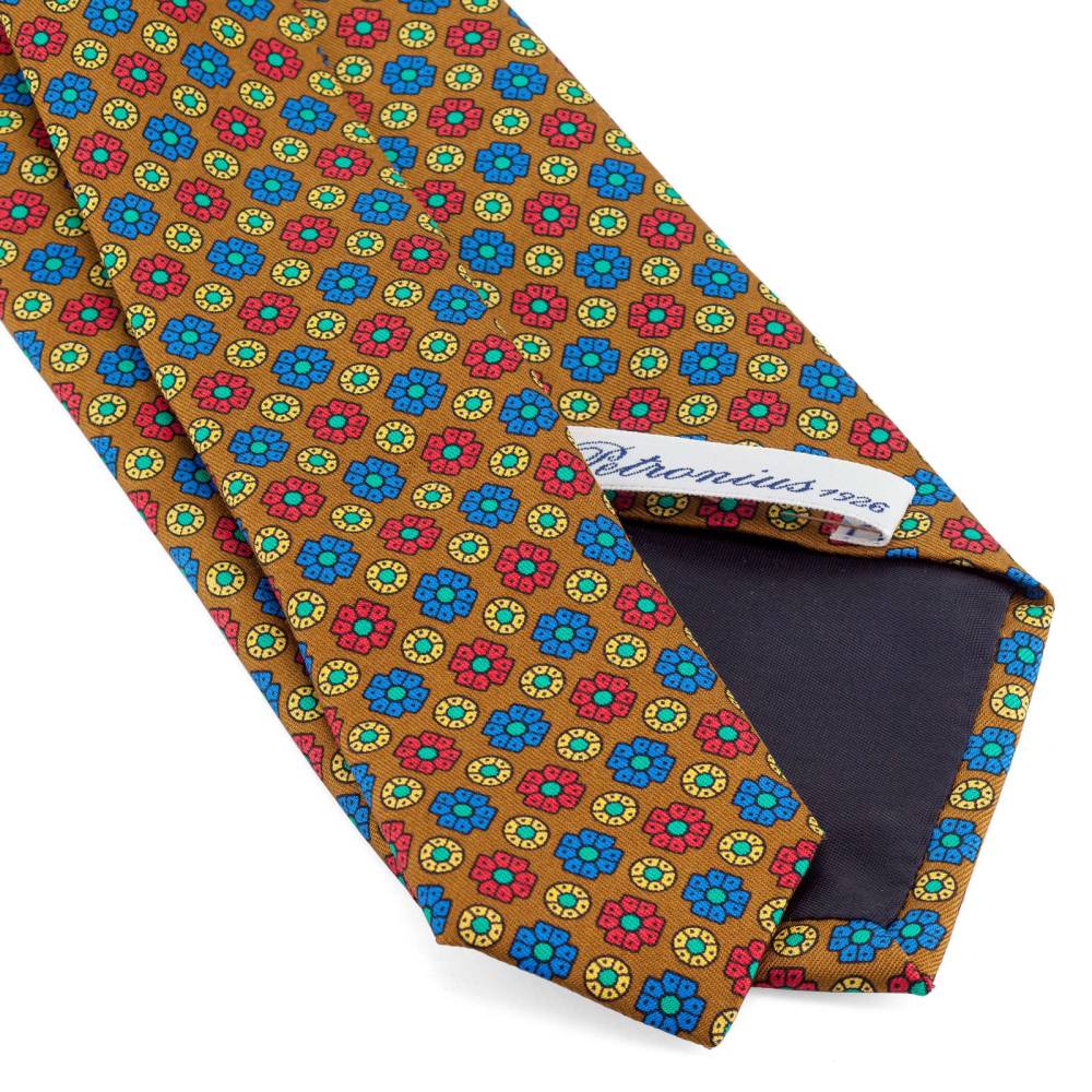 Классический галстук итальянской марки Petronius 1926 полностью изготовлен вручную по всем правилам ремесла. Сшит из ценного шёлка из винтажной коллекции с набивным рисунком. Ткань отличается гладкой фактурой и приглушённым блеском. Подкладка галстука выполнена из тонкой натуральной шерсти, которая добавляет узлу объём и характерную складку. Такой галстук превосходно дополнит деловой костюм, а также непарный комплект современного джентльмена.
