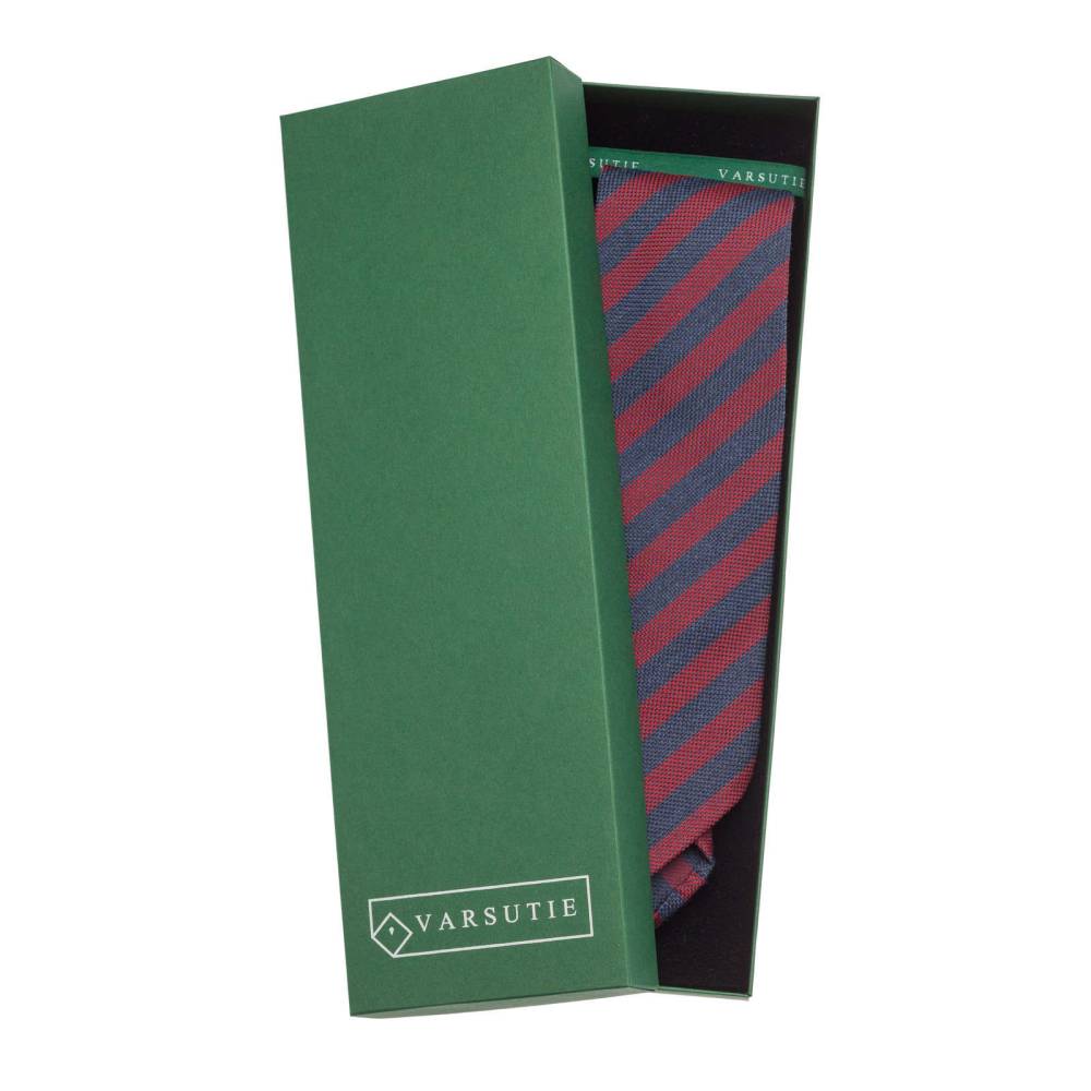 Классический галстук из лимитированной коллекции польского бренда Varsutie. Полностью изготовлен вручную по всем правилам ремесла. Для данной модели была использована высококачественная ткань из итальянского региона Комо, в состав которой входят шерсть и шёлк. Подкладка галстука выполнена из тонкой натуральной шерсти, которая добавляет узлу объём и характерную складку. По всей длине галстука проходит тонкая нить, завершающаяся петлёй в узком крае. Такая конструкция позволяет быстро разглаживать образовавшиеся складки на изделии. Также особенностью модели являются вручную подшитые края (англ. Hand Rolled Edges). К галстуку прилагается фирменная подарочная коробка.