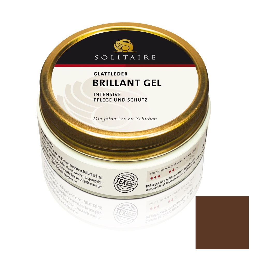Мягкий деликатный тёмно-коричневый крем Solitaire Brilliant Gel ухаживает и великолепно питает гладкую кожу, а также полированную кожу. В основу формулы положен натуральный пчелиный воск. Не содержит растворителей.