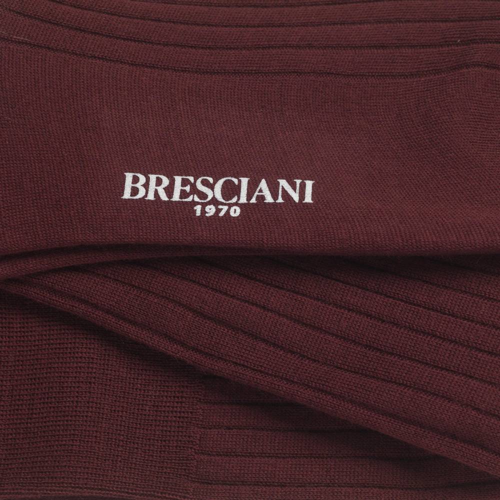 Бордовые шерстяные мужские гольфы Ascanio премиум-класса итальянской марки Bresciani. Пряжа сделана из шерсти австралийских овец-мериносов двойного кручения с добавлением полиамида для долговечности. Носки и гольфы изготавливают на итальянской фабрике Bresciani на станках с 200 иглами и более и применением ручного труда. Мысок присоединён к основной части кеттельным швом, выполненным на специальной машинке: такой шов практически незаметен и не доставляет дискомфорта.