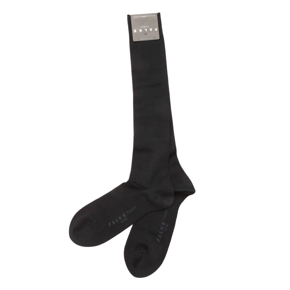 Гольфы Tiago чёрного цвета немецкой фирмы Falke выполнены из высококачественного хлопка, а именно из фильдекоса, или шотландской нити (fil d’ecosse / cotton lisle) в сочетании с эластаном. Фильдекос – это туго скрученная хлопчатобумажная нить, созданная из лучших сортов хлопчатника. Изделия из такого материала отличаются высокой прочностью и износостойкостью: они прекрасно держат форму и не портятся после стирок. В области стопы имеется дополнительный слой хлопковой ткани, что создает усиление зон нагрузки.