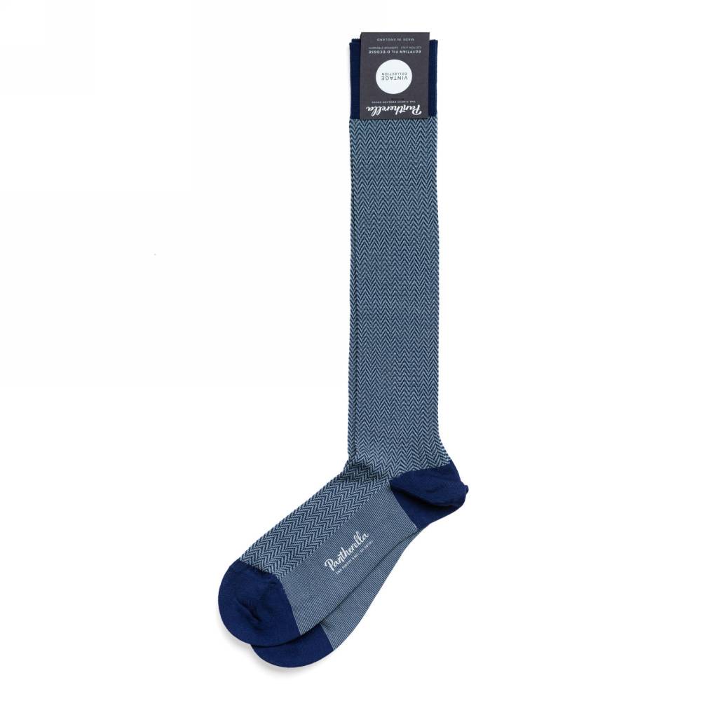 Модель имеет узнаваемый узор «ёлочка» в голубых и тёмно-синих тонах. Данные гольфы можно сочетать как с повседневной обувью, джинсами и брюками чинос, так и с деловыми туфлями и костюмами.