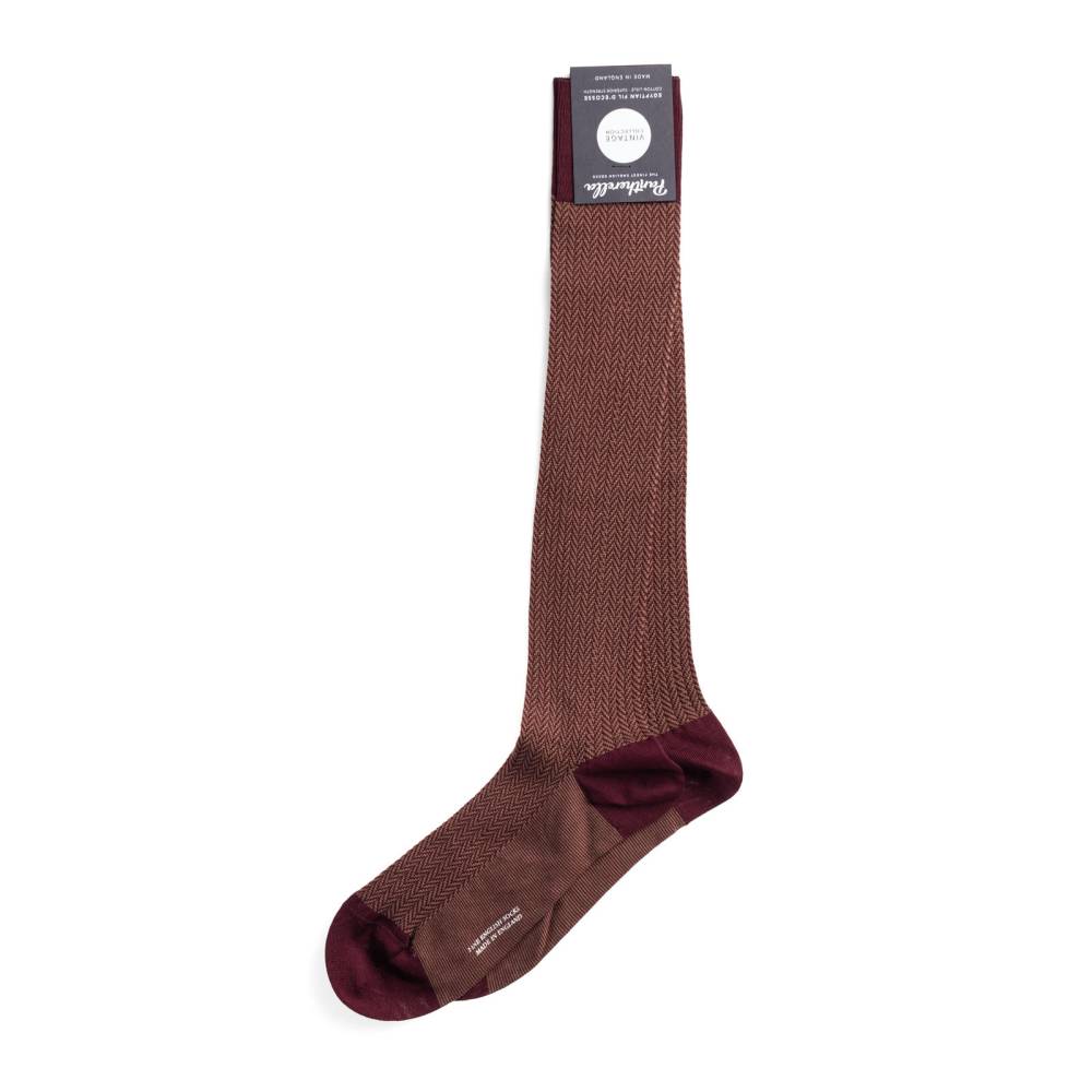 Модель имеет узнаваемый узор «ёлочка» в бордовых и коричневых тонах. Данные гольфы можно сочетать как с повседневной обувью, джинсами и брюками чинос, так и с деловыми туфлями и костюмами.