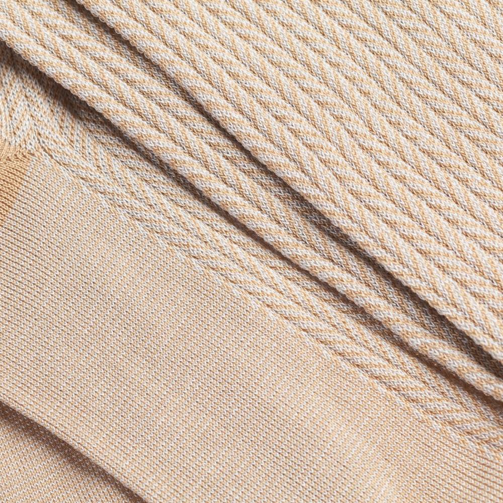 Модель имеет узнаваемый узор «ёлочка» в бежевых тонах. Данные гольфы можно сочетать как с повседневной обувью, джинсами и брюками чинос, так и с деловыми туфлями и костюмами.