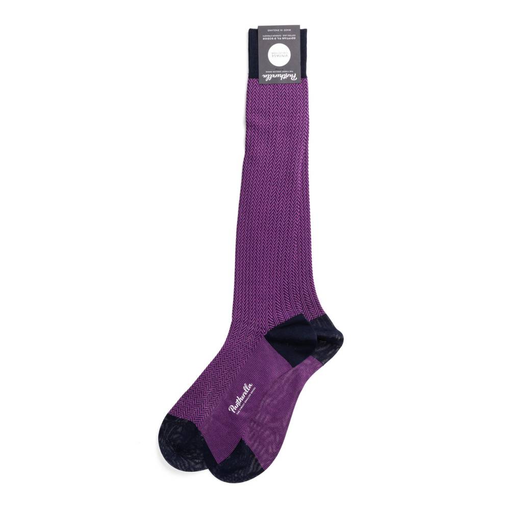 Модель имеет узнаваемый узор «ёлочка» в тёмно-синих и фиолетовых тонах. Данные гольфы можно сочетать как с повседневной обувью, джинсами и брюками чинос, так и с деловыми туфлями и костюмами.