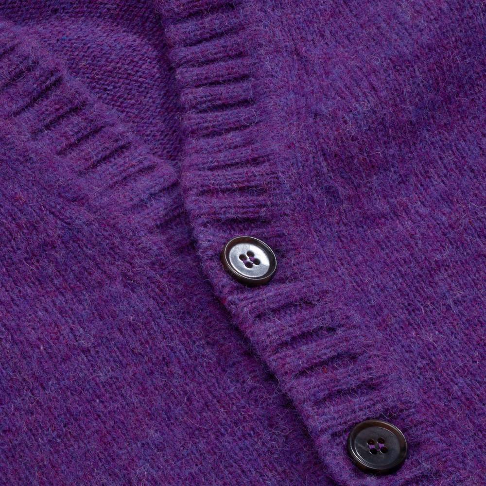 Классический мужской кардиган связан из 100% шетлендской пряжи (Shetland wool) благородного темно-синего цвета. Плотность вязки составляет 7 Gaupe. Пряжа отличается высокой износостойкостью. Материал очень приятен на ощупь и практически невесом. Плотная структура волокон эффективно задерживает воздух, обеспечивая превосходное соотношение тепла и веса. Это классический предмет мужского гардероба, который традиционно пользуется большой популярностью у поклонников стиля Лиги плюща (Ivy style).