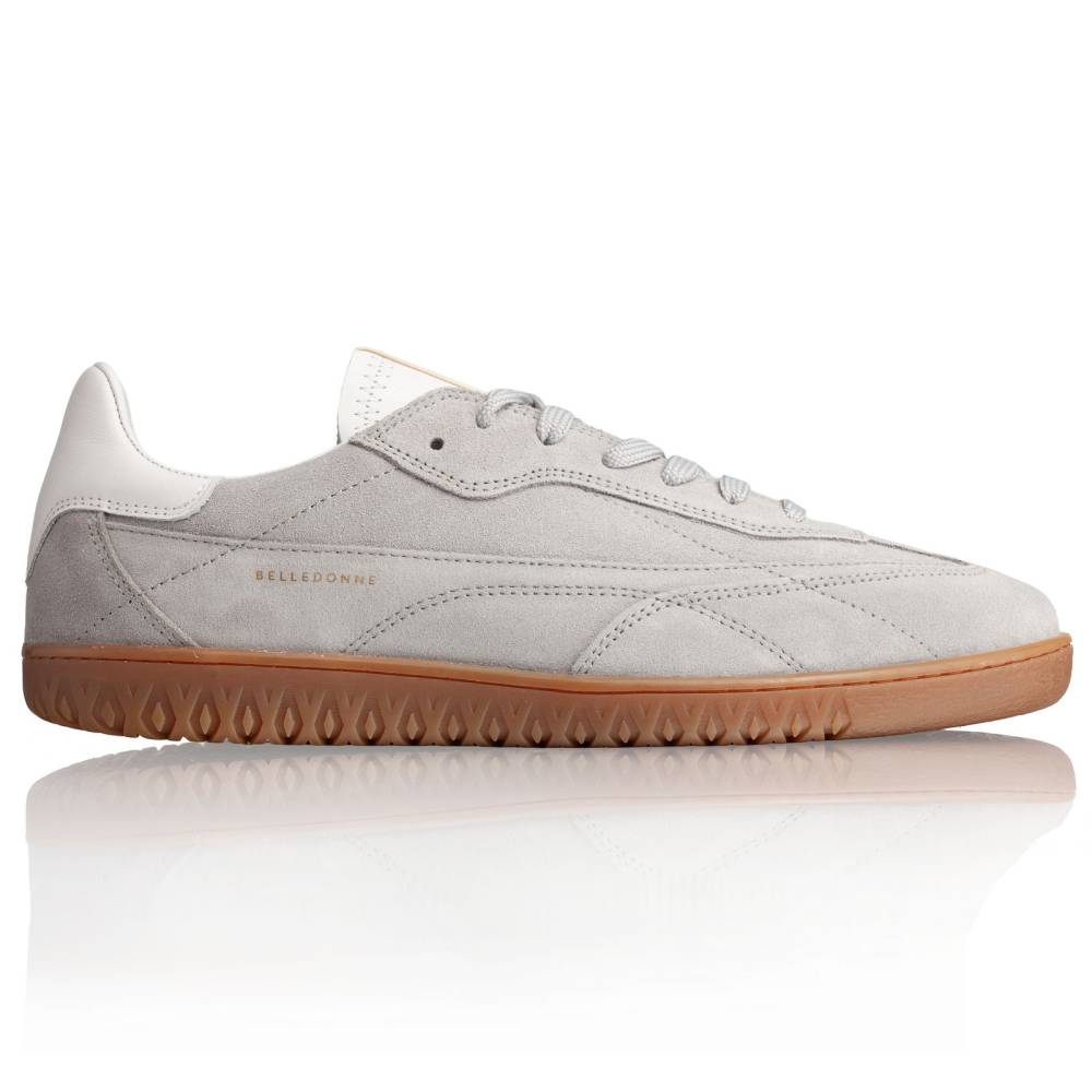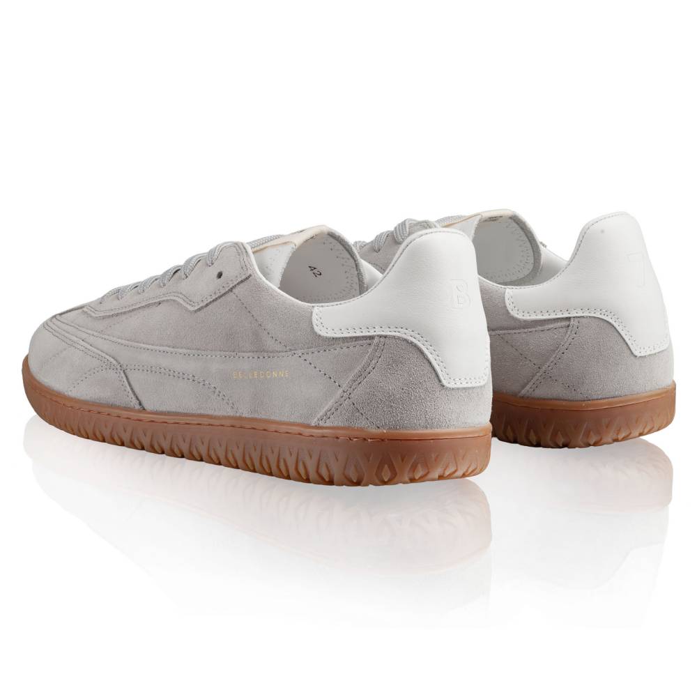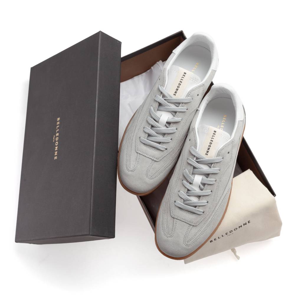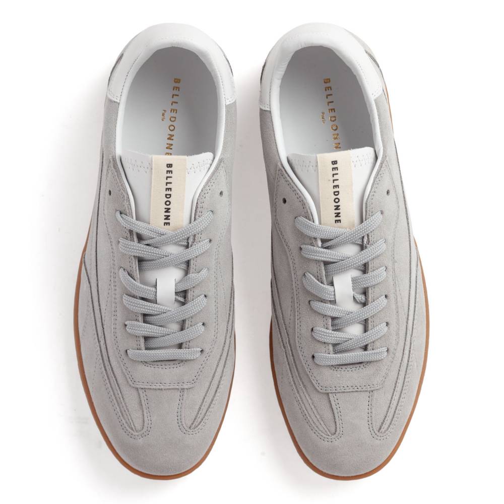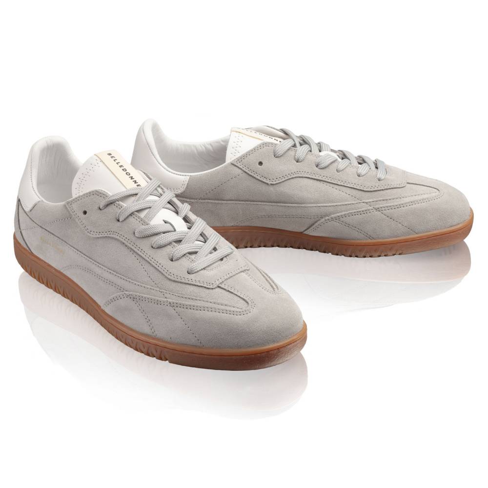 Лаконичные серые кеды B7 парижского бренда Belledonne на фактурной резиновой подошве карамельного цвета. С внешней стороны высококачественные кожа и замша с итальянских дубилен. Внутри – воловья кожа и экологичная ворсистая ткань. Модель оснащена съёмной анатомической стелькой. Подошва проклеена и дополнительно пришита по всему периметру к верху. Производство кед и кроссовок Belledonne осуществляется на португальской фабрике, расположенной возле города Порту. Большинство операций выполняется с помощью машин, но задействуется и ручной труд.