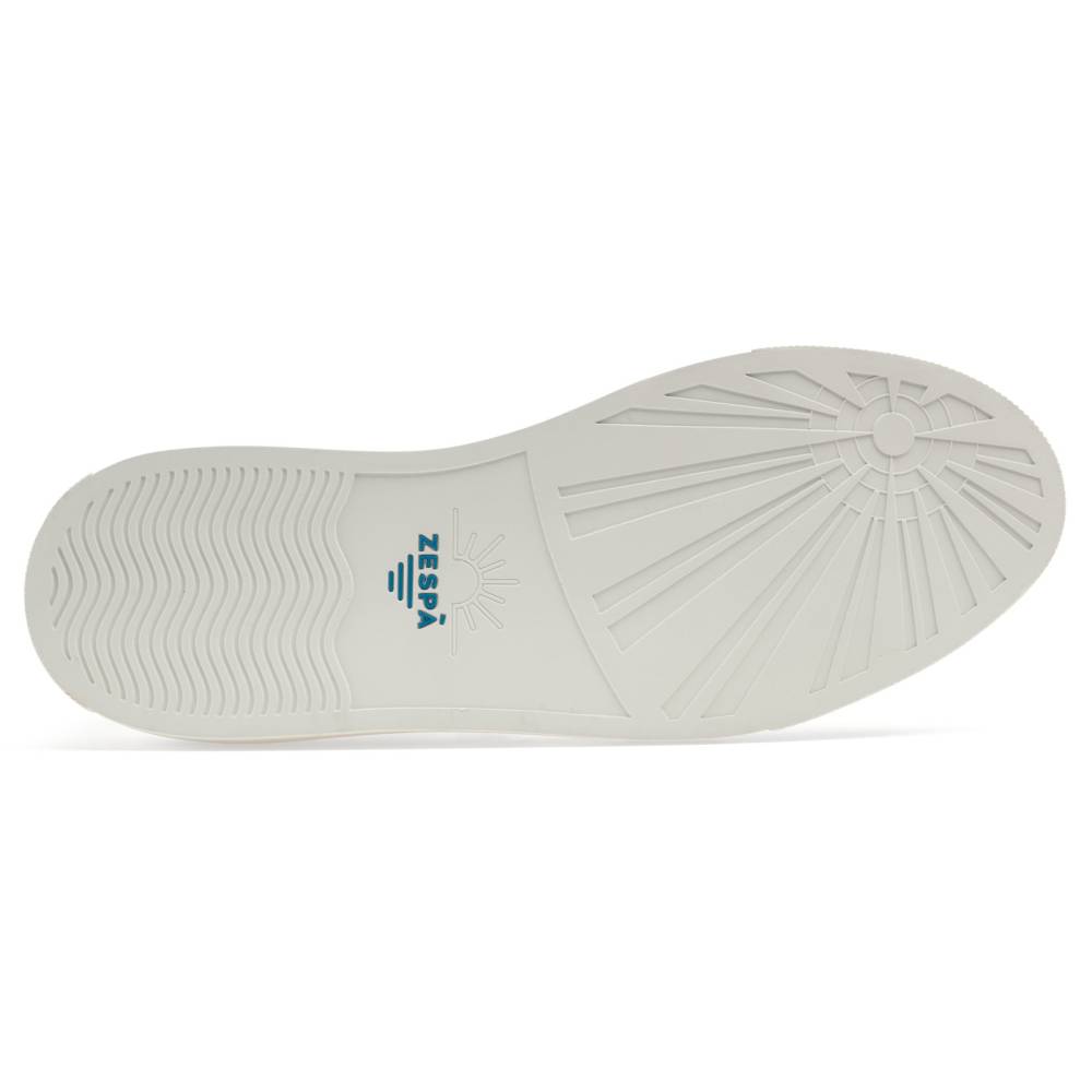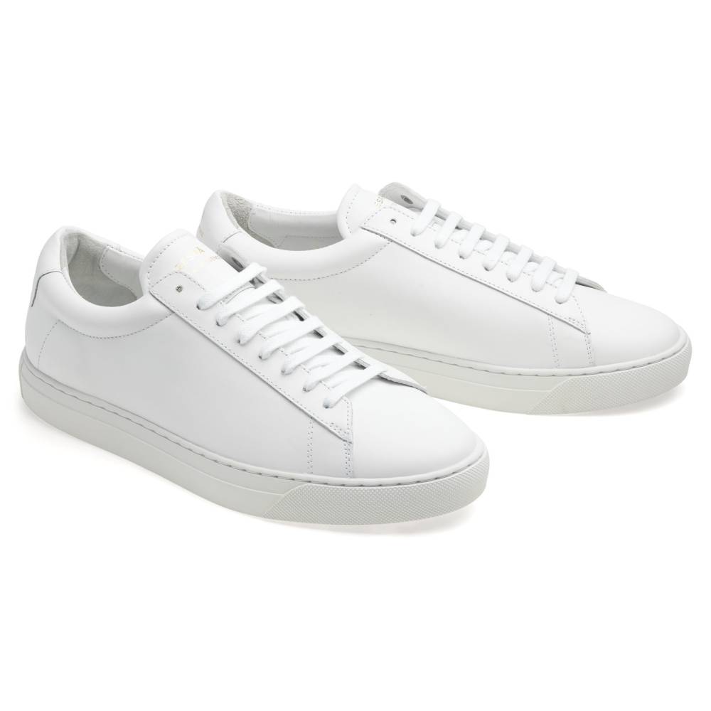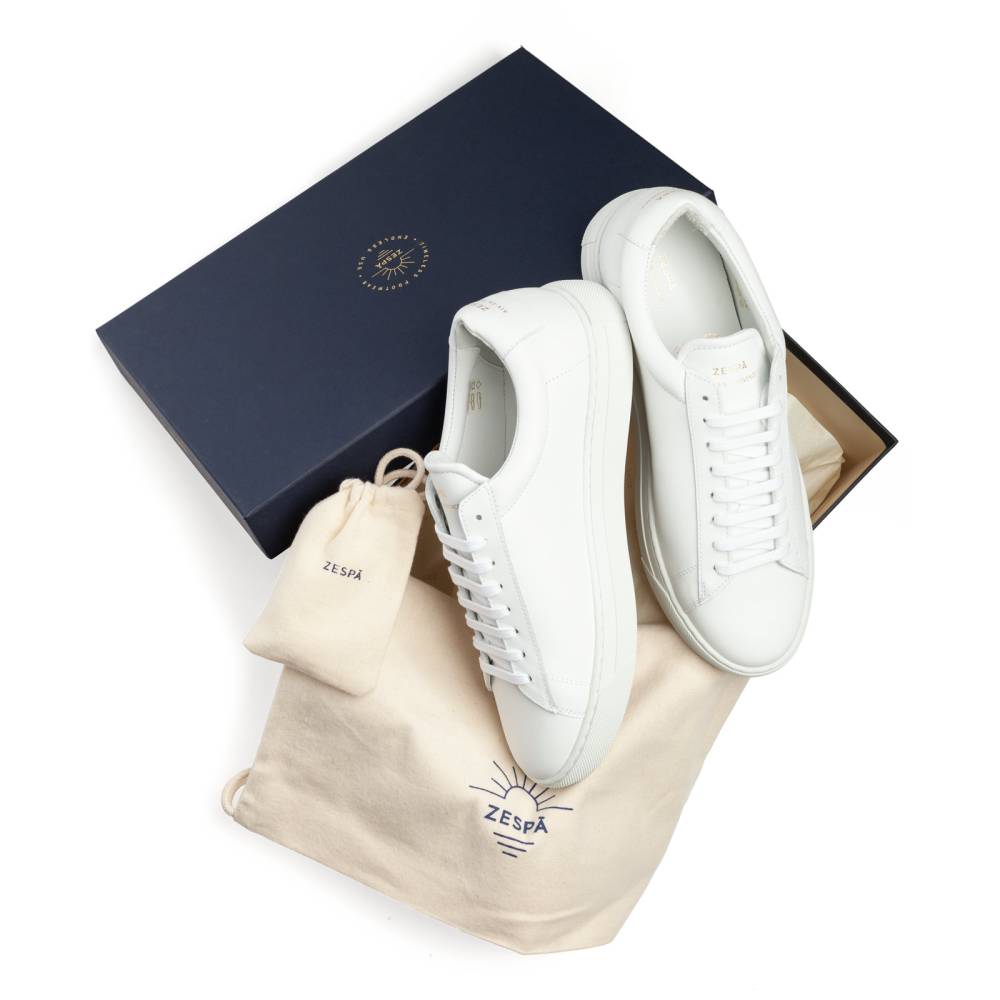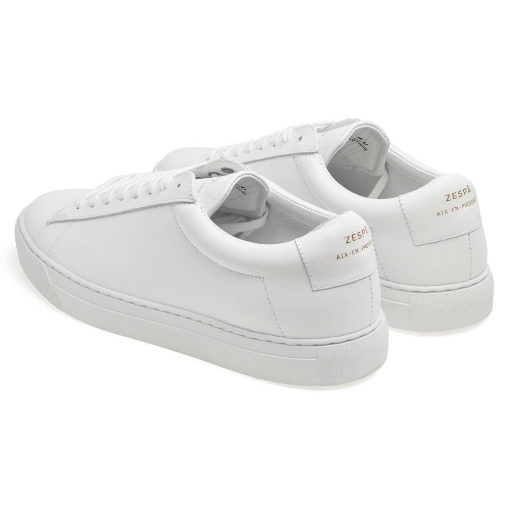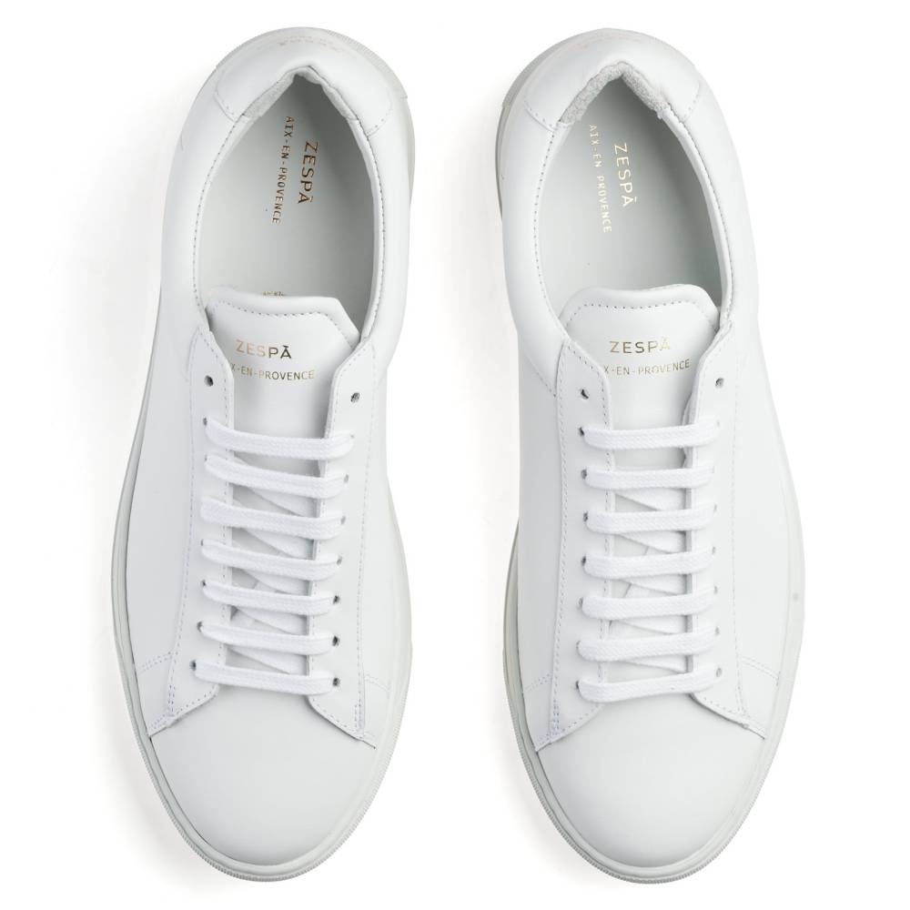 Классические белые мужские кеды французской марки ZESPÀ сшиты из высококачественной мягкой кожи ягнёнка с сохранённым лицевым слоем (англ. full grain nappa). Подкладка и анатомическая стелька выполнены из телячьей кожи; резиновая подошва прошита по всему периметру; мягкие и крепкие шнурки сделаны из чёсаного хлопка. Кеды сшиты на колодке средней полноты (F) и рассчитаны на стопу средней ширины со средним или умеренно высоким подъёмом.