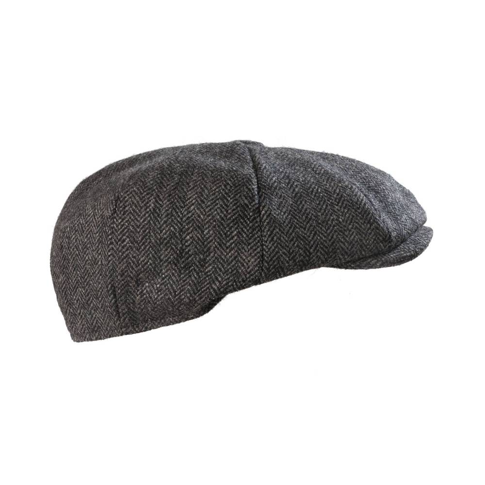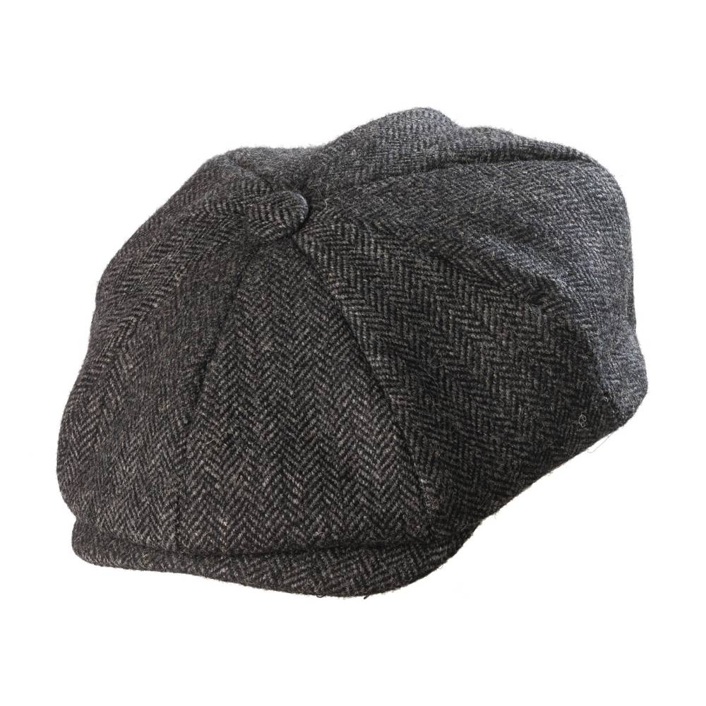 Классическая кепка-восьмиклинка BakerBoy марки Christys'. Выполнена из качественного шотландского твида серого и чёрного оттенков. Подкладка из вискозной тафты.