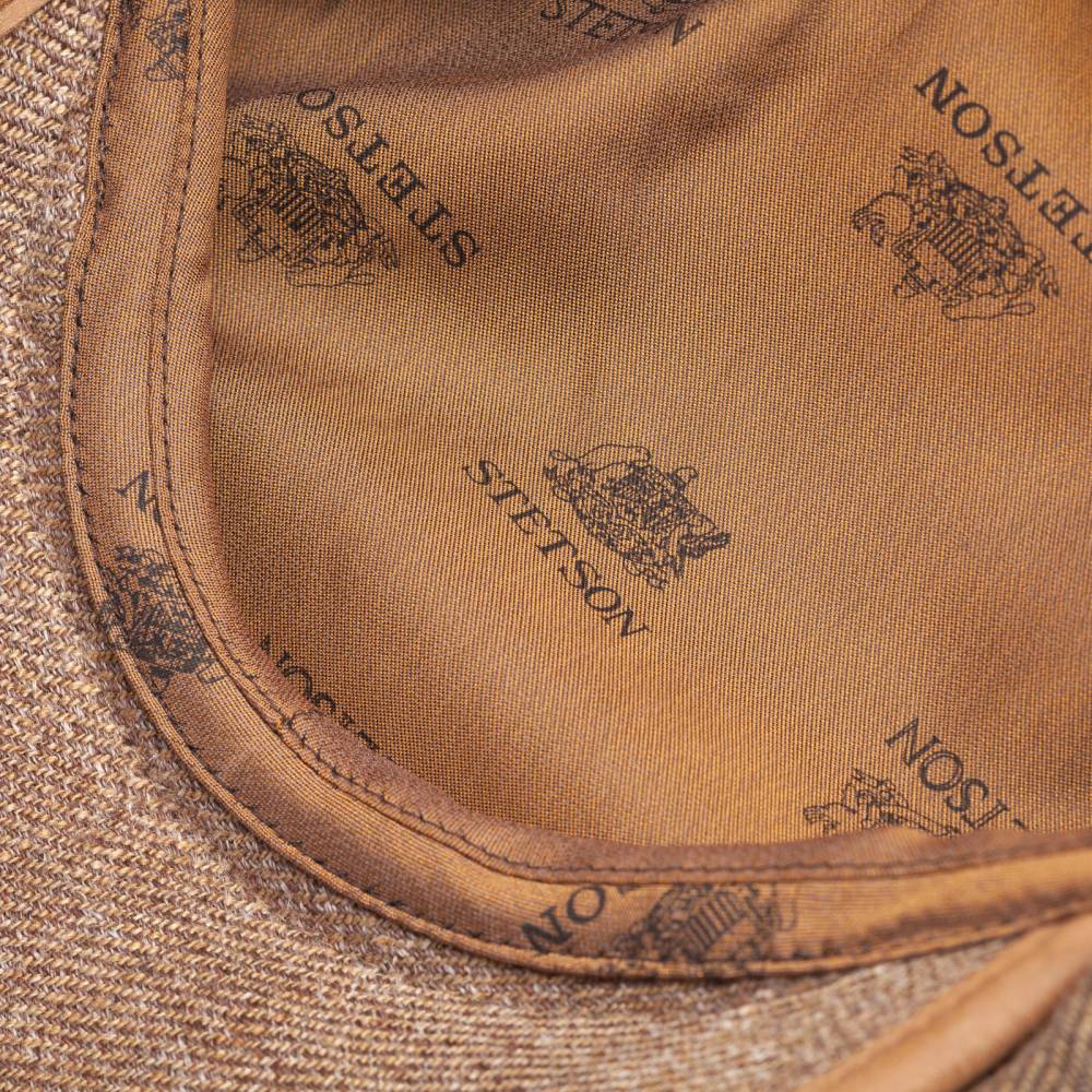 Классическая летняя "кепка газетчика" (англ. Newsboy cap) марки Stetson. Верх головного убора выполнен из 100%-го льна. Подкладка - из гигроскопичной смесовой ткани, украшенной логотипами бренда. Козырёк кепки закреплён вручную.