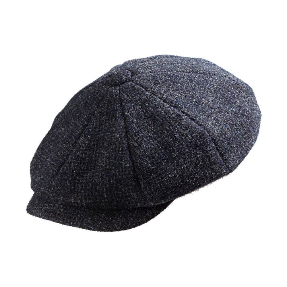 Тёмно-синяя классическая кепка-восьмиклинка Hatteras американского бренда Stetson. Верх выполнен из высококачественной 100% фактурной шерсти меланж, подкладка — из мягкого износостойкого хлопка в «ёлочку», украшенного вышитым названием бренда.