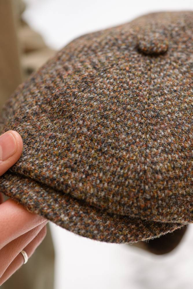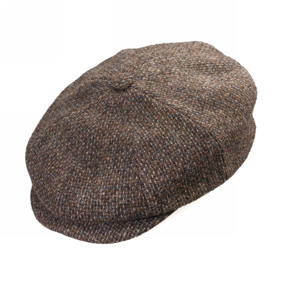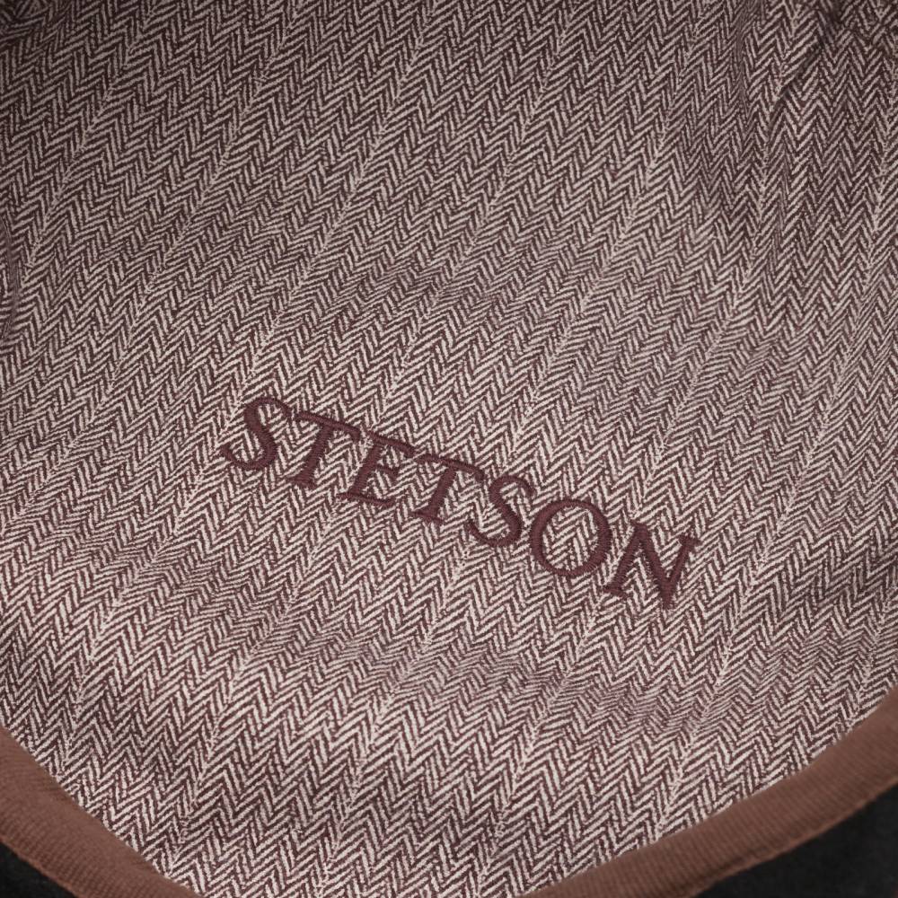 Коричневая классическая кепка-восьмиклинка Hatteras американского бренда Stetson. Верх выполнен из высококачественной 100% фактурной шерсти меланж, подкладка — из мягкого износостойкого хлопка в «ёлочку», украшенного вышитым названием бренда.