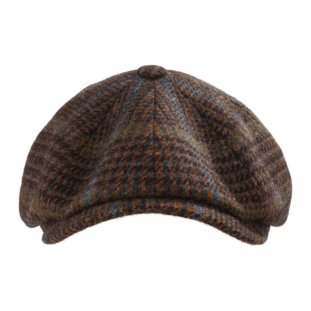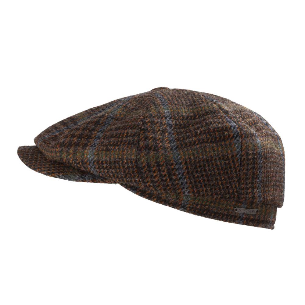 Коричневая кепка-восьмиклинка американской бренда Stetson. Верх выполнен из фактурной шерсти, а подкладка — из мягкой гладкой ткани, в состав которой входят вискоза и хлопок. Ткань раскраивалась вручную таким образом, чтобы клинья образовывали паттерн от пуговки на макушке. Таким образом клетчатый узор совпадает на всех швах, что является признаком качественной вещи. Козырёк слегка выдаётся из-под верха и сшит с ним в трёх точках. Сзади кепка украшена серебристым фирменный шильдиком. Внутри по окружности головы для комфортной посадки расположена синяя репсовая лента.