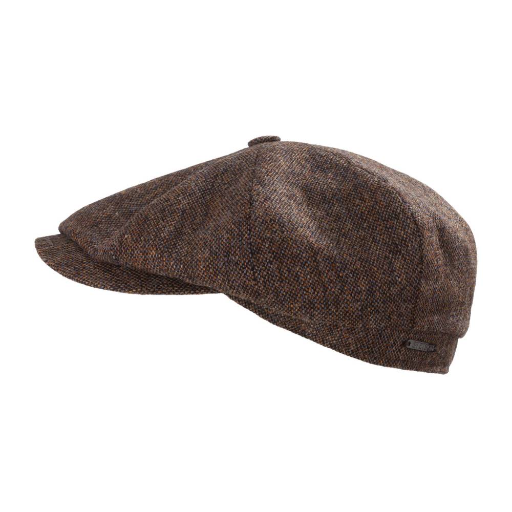 Лёгкая коричневая кепка-восьмиклинка американского бренда Stetson. Верх выполнен из фактурной шерсти, а подкладка — из мягкой гладкой ткани, в состав которой входят вискоза и хлопок. Полотно ткани отличается яркими разноцветными узелками и меланжевым эффектом, которые свойственны донегальскому твиду. Козырёк слегка выдаётся из-под верха и сшит с ним в трёх точках. Сзади кепка украшена серебристым фирменный шильдиком. Внутри по окружности головы для комфортной посадки расположена синяя репсовая лента.