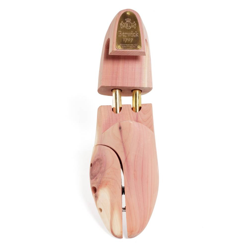 Фирменные колодки испанского обувного бренда Berwick. Отличное дополнение к выбранной паре. Колодки выполнены из неокрашенного кедра. В конструкции используется металлическая фурнитура золотистого цвета. Задник украшен шильдом с выгравированным логотипом бренда. Колодки наделены приятным запахом кедрового эфирного масла, отлично впитывают влагу, разглаживают кожу изнутри и предотвращают загибание подошвы вверх.