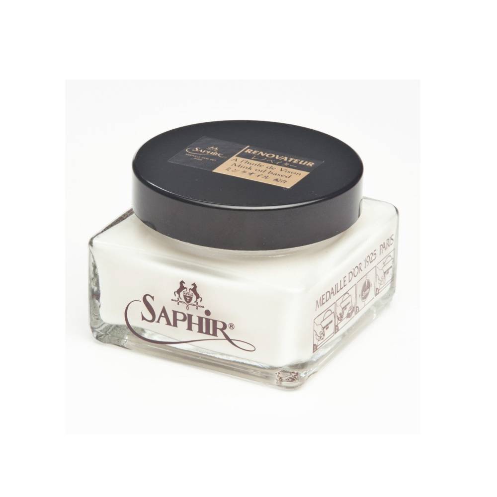 Бальзам-восстановитель Renovateur из премиальной линии Saphir Medaille d'Or 1925 предназначен для ухода и востановления за изделиями (одежда, обувь, мебель и др.) из гладких, тонких, чувствительных и нежных кож (кроме незащищенных кож типа наппа, лайка). Формула обогащена ценными природными ингредиентами: пчелиным воском, ланолином и норковым маслом.