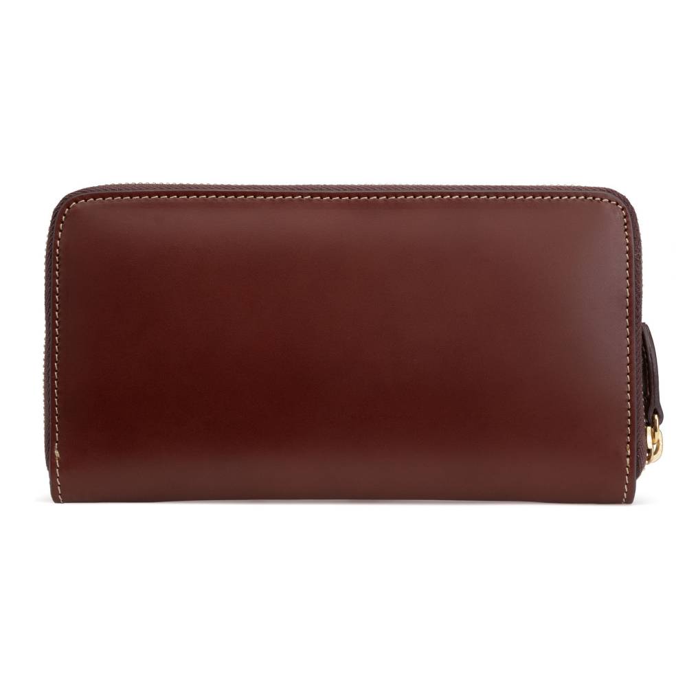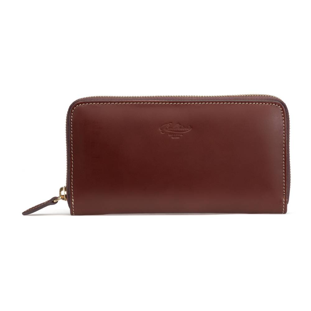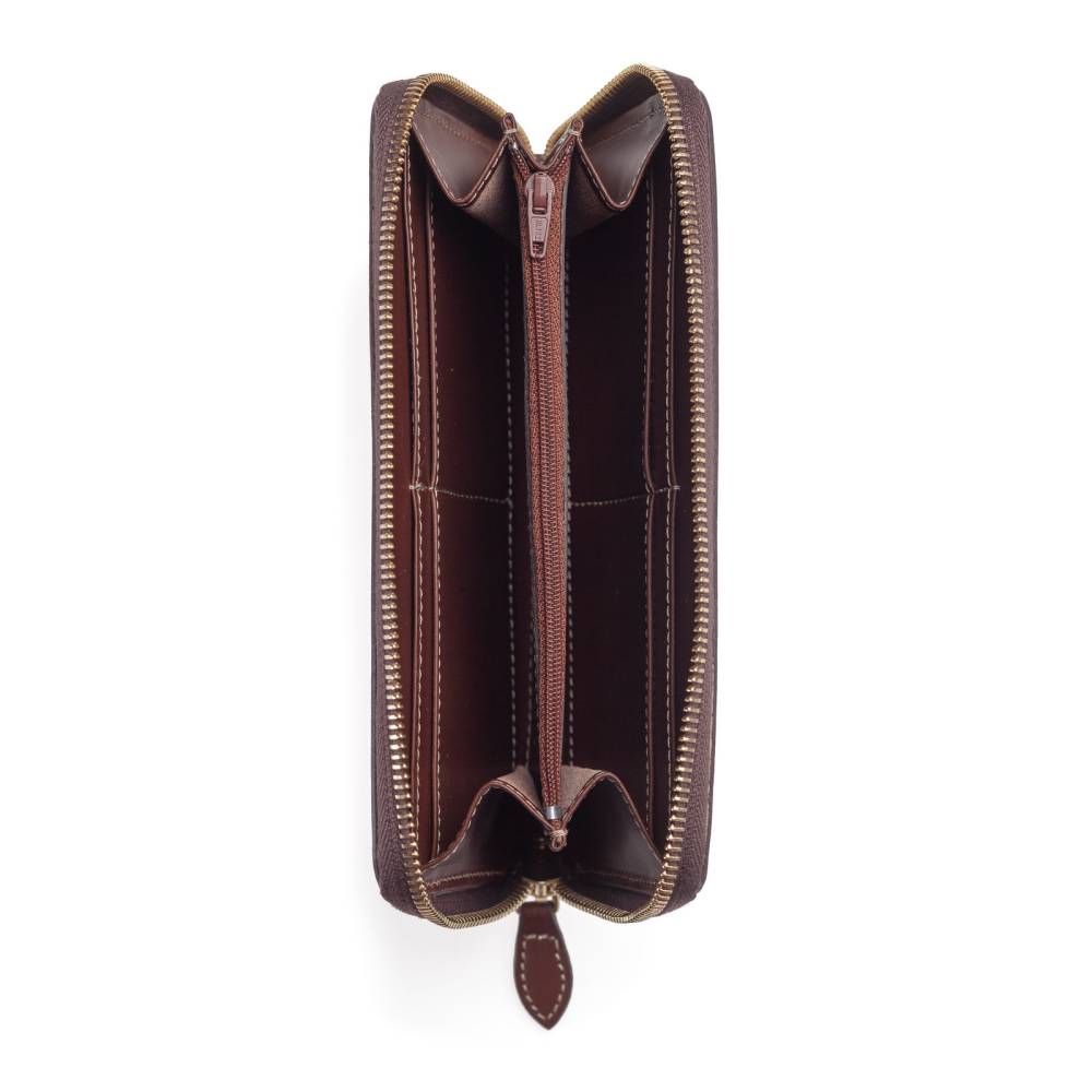 Вместительный кожаный кошелёк коричневого цвета, который подойдёт как мужчинам, так и женщинам. Удобная застёжка на молнии позволит легко добраться до наличных денег и банковских карт, для которых предусмотрено множество отделений внутри кошелька. Снаружи кошелёк украшен тиснением в виде логотипа марки.
