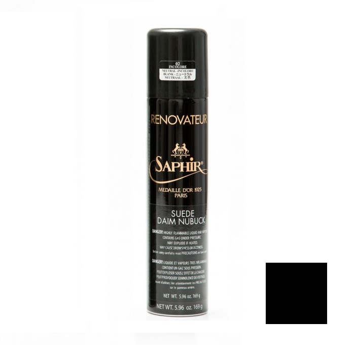 Спрей краситель-востановитель чёрного цвета Renovateur Suede из премиальной линии Saphir Medaille d'Or 1925 с сильным очищающими и водоотталкивающими свойствами. Превосходно подходит для изделий из замши и нубука сложных оттенков. Используемое в составе миндальное масло предотвращает пересыхание кожи и смягчает её.
