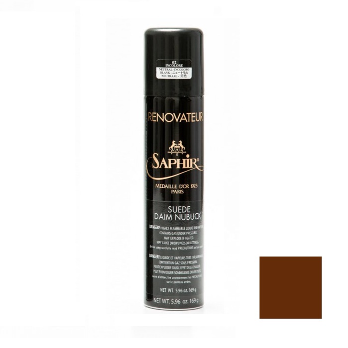 Спрей краситель-востановитель коричневого цвета Renovateur Suede из премиальной линии Saphir Medaille d'Or 1925 с сильным очищающими и водоотталкивающими свойствами. Превосходно подходит для изделий из замши и нубука сложных оттенков. Используемое в составе миндальное масло предотвращает пересыхание кожи и смягчает её.