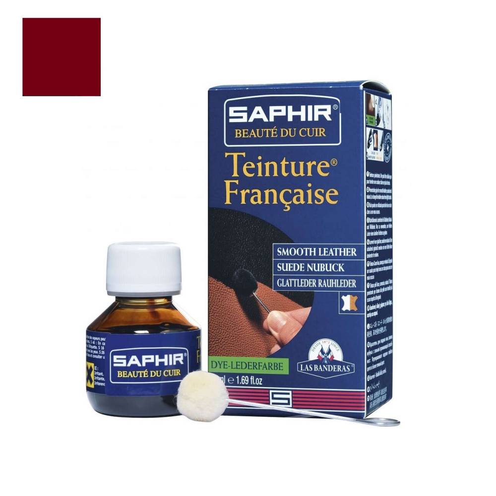 Краска Teinture Francaise от французского бренд Saphir – высокоэффективная проникающая краска на спиртовой основе, предназначенная для полного или частичного перекрашивания изделий из гладкой кожи. Состав великолепно впитывается в поры. После высыхания краска не тускнеет и не стирается.