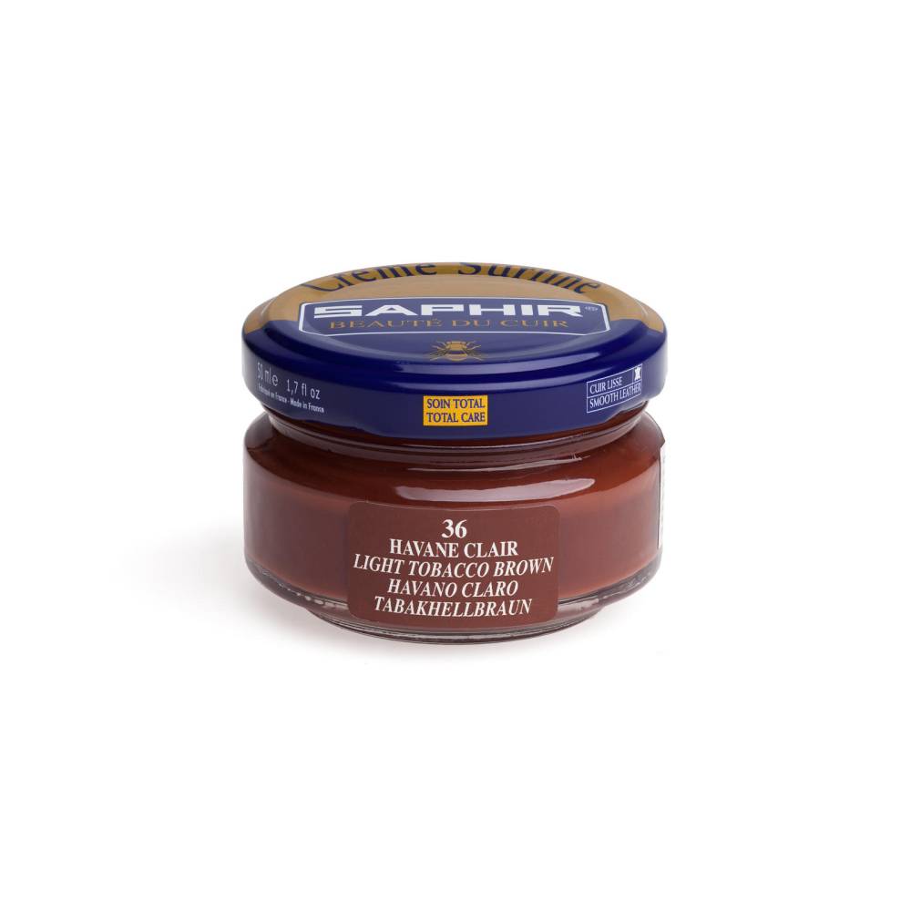 Крем Saphir Surfine табачного цвета, на основе пчелиного воска и масла сладкого миндаля, глубоко увлажняет и питает кожу. Тщательно подобранные минеральные воски обеспечивают водонепроницаемость и защиту кожи, а высококонцентрированные пигменты эффективно восстанавливают цвет кожи.