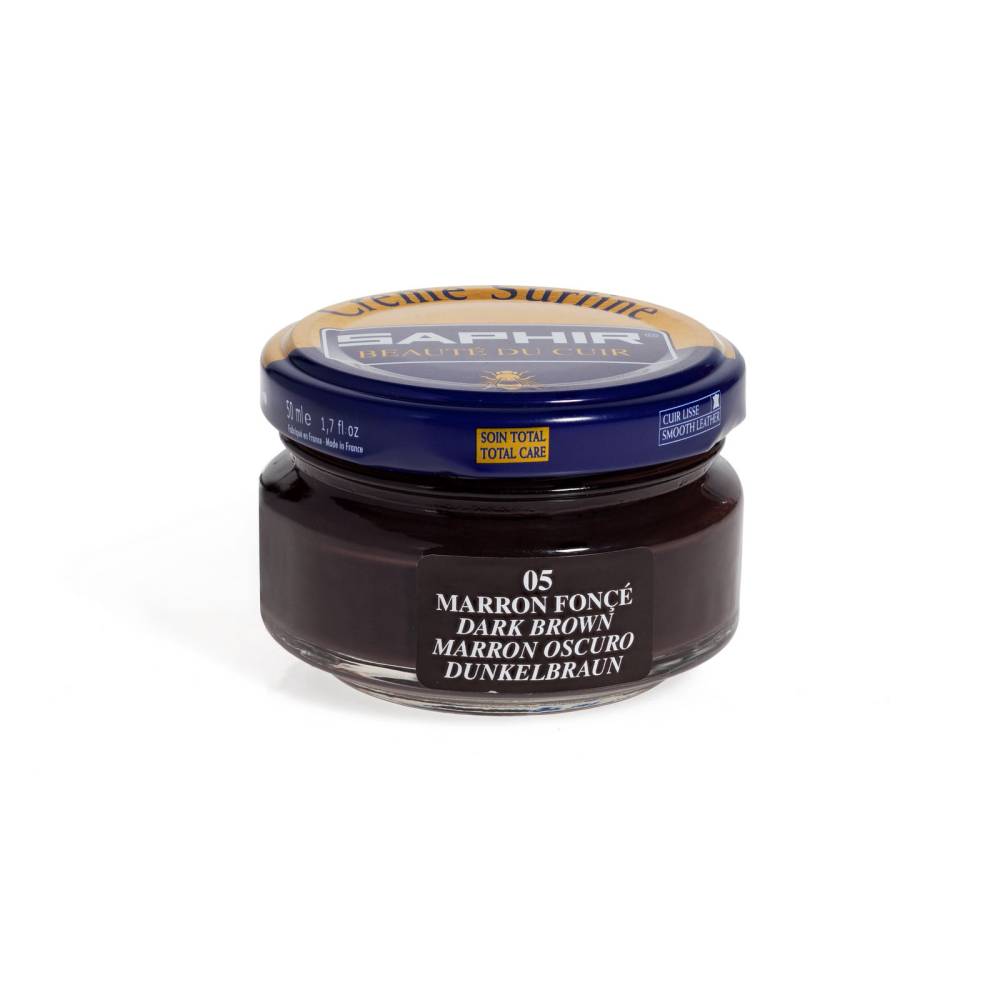 Крем Saphir Surfine темно-коричневого цвета, на основе пчелиного воска и масла сладкого миндаля, глубоко увлажняет и питает кожу. Тщательно подобранные минеральные воски обеспечивают водонепроницаемость и защиту кожи, а высококонцентрированные пигменты эффективно восстанавливают цвет кожи.