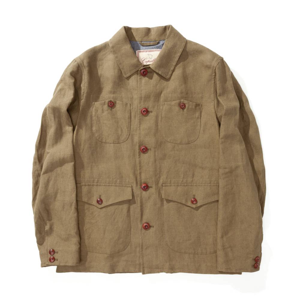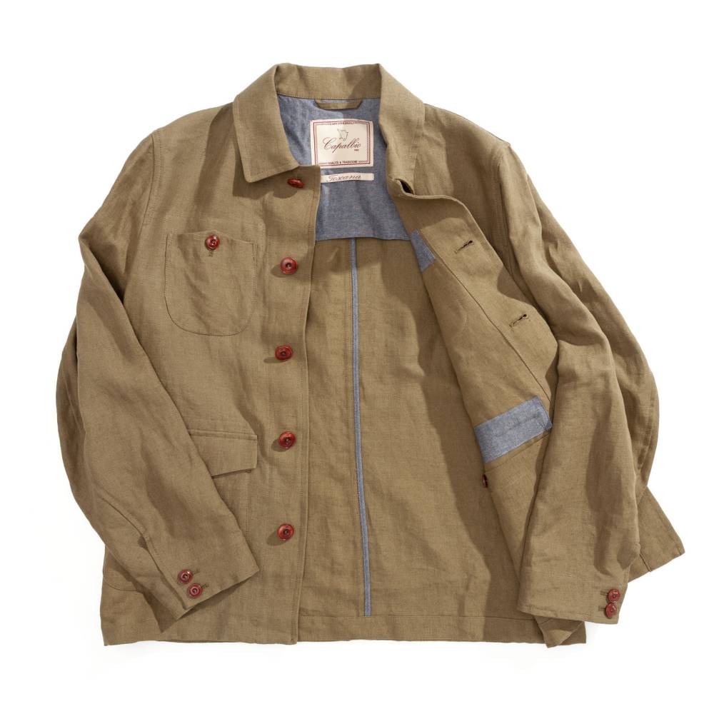 Льняная куртка-пиджак Morganti от тосканского бренда Capalbio — это искусное сочетание утилитарного стиля и средиземноморской элегантности. Модель зеленого оттенка выполнена из натурального льна, который обеспечивает исключительный комфорт и приятную прохладу в теплое время года. Дизайн куртки переосмысляет классический силуэт сафари: четыре накладных кармана на пуговицах не только служат практичным решением для хранения вещей, но и формируют выразительный визуальный характер изделия. Свободный крой позволяет легко интегрировать куртку в расслабленные летние образы с легкими чиносами, поло или льняными рубашками.