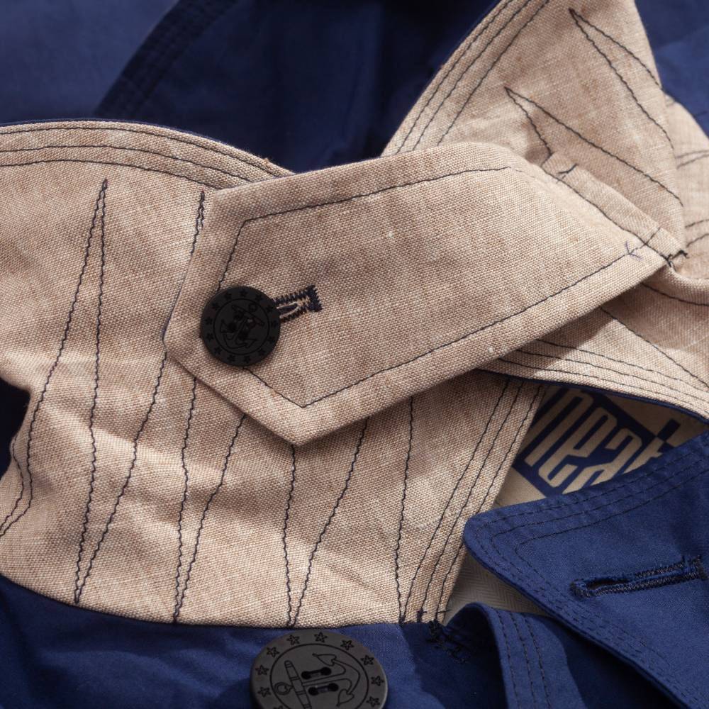 Облегченный классический морской бушлат Peacoat от тосканской мануфактуры L'impermeabile — это современная интерпретация классической морской униформы, объединившая аутентичный вневременной стиль в итальянском прочтении. Модель выполнена из высококачественного хлопка тёмно-синего цвета и идеально подходит для переменчивой демисезонной погоды. Бушлат сохраняет канонический двубортный силуэт, а характерные широкие лацканы и крупные матовые пуговицы с гравировкой якоря подчеркивают дух оригинала. Светлая хлопковая подкладка включает продуманную систему хранения: два потайных кармана на молнии для ценных вещей и вместительный накладной карман в нижней части.