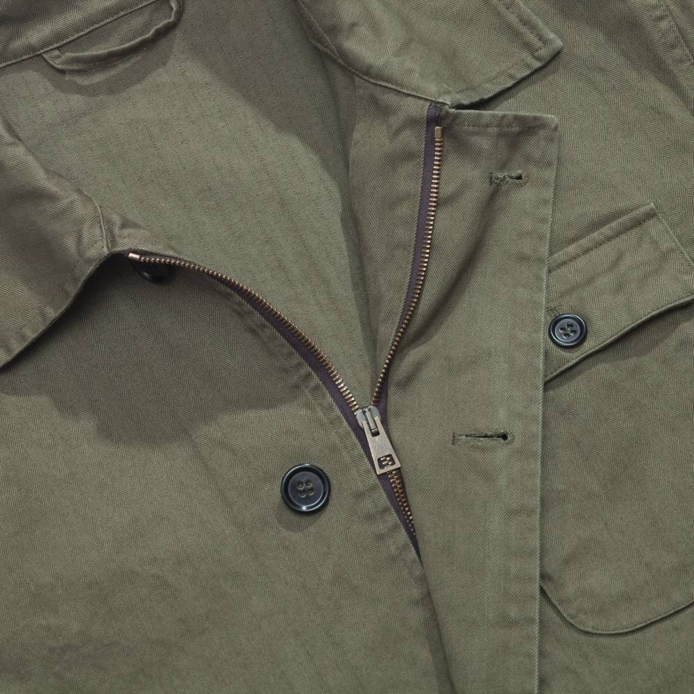 Лёгкая куртка L`Impermeabile вдохновлена классическими палубными куртками ВМС США. Модель сшита из плотной и прочной хлопковой ткани в ёлочку. Застёгивается куртка на молнию и пуговицы; отложной воротник при необходимости защищает от ветра. Кроме трёх нагрудных имеется небольшой внутренний карман с застёжкой велкро для самых важных вещей.