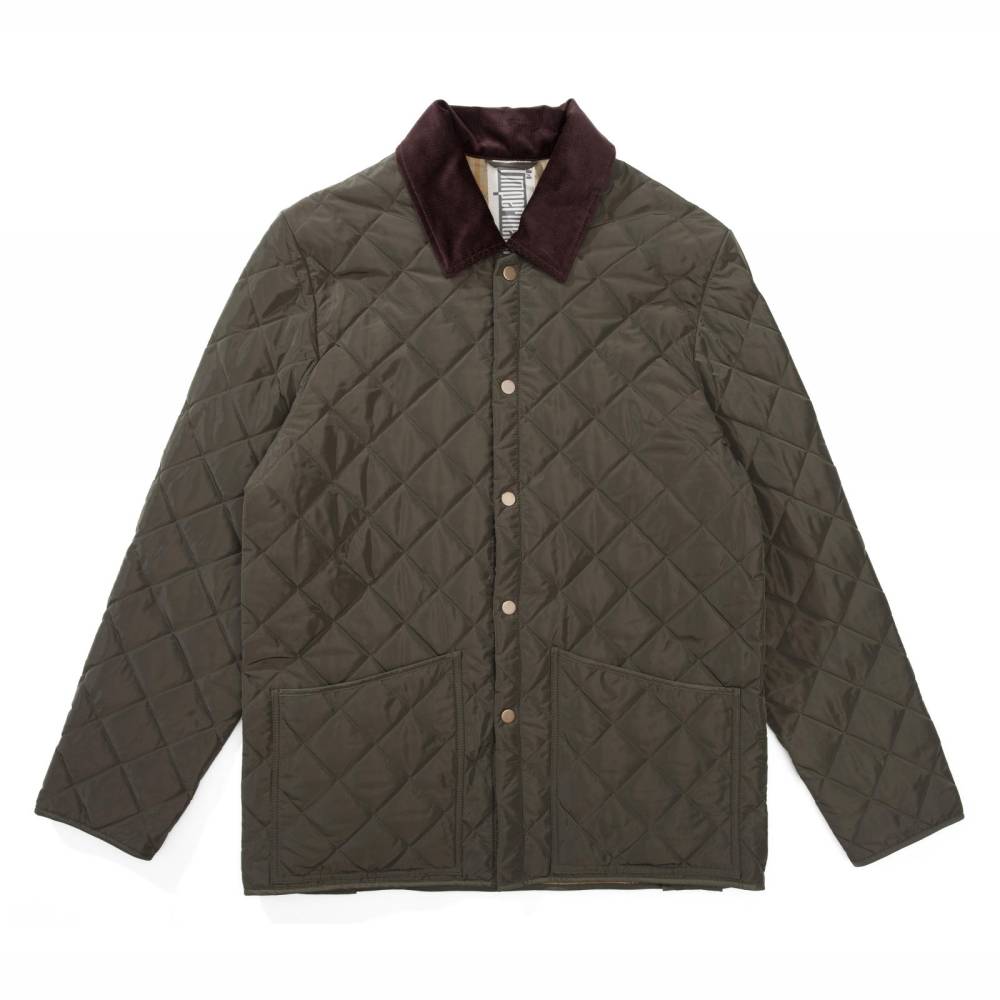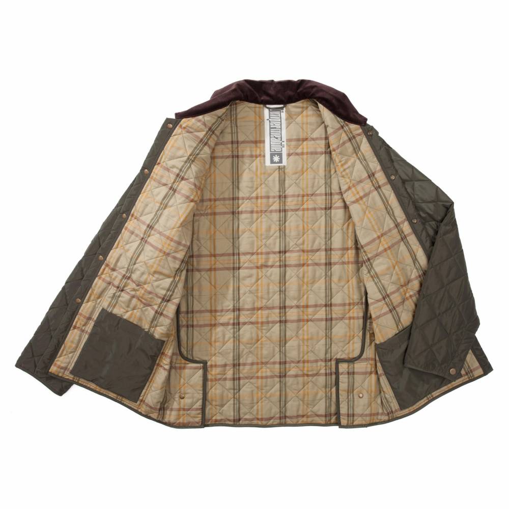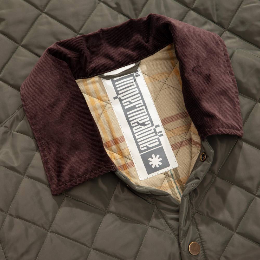 Классика британского загородного стиля – стёганая куртка с вельветовым воротником. Своё видение легендарной модели представляет итальянский бренд из Тосканы L`impermeabile. Куртка выполнена из лёгкого и гладкого полиэстера оливкового цвета. Планка, шлицы и манжеты застёгиваются на металлические кнопки. Стандартный силуэт – не сильно сводный, но и не приталенный. Два кармана с внешней стороны и два внутри. Фирменная клетчатая подкладка выполнена из хлопка в сочетании с полиэстером.