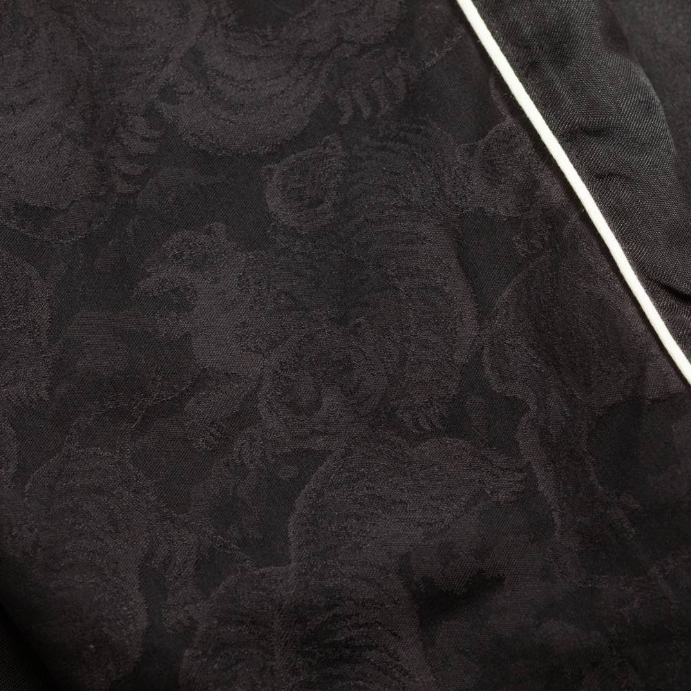 Для создания живого, объемного рисунка на спине использовано 12 оттенков нитей в одной цветовой гамме. Это превращает куртку в настоящее произведение искусства. Внешняя сторона выполнена из благородного вельветина (хлопок и вискоза) с мягким матовым блеском. Внутренняя подкладка 100% хлопковый жаккард с архивным узором «Сто тигров» (Hyakutora). Эластичные манжеты и воротник воссозданы по образцам 1950-х годов. Особая «рыхлая» текстура трикотажа достигнута благодаря старинной технологии слабой скрутки нитей. Благодаря мягкому слою утеплителя куртка отлично подходит для прохладного сезона.