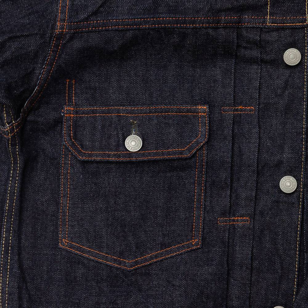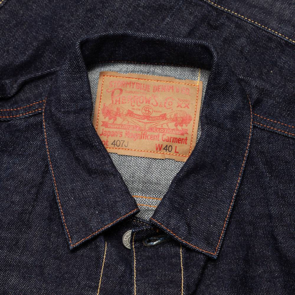Джинсовая куртка японского бренда Pherrow's. Изготовлена из оригинального селвидж-денима плотностью 13,5 унций. Сбалансированная смесь американского и австралийского хлопка соткана на станках с низким натяжением нити. Это придает ткани характерную шероховатость и гарантирует красивое вертикальное выцветание (фейдинг) со временем. Имеет культовые складки спереди и симметричные карманы. Модель дополнена оригинальными пуговицами с гравировкой «STORMY BLUE & CO.» и бумажной нашивкой в духе позднего винтажа.