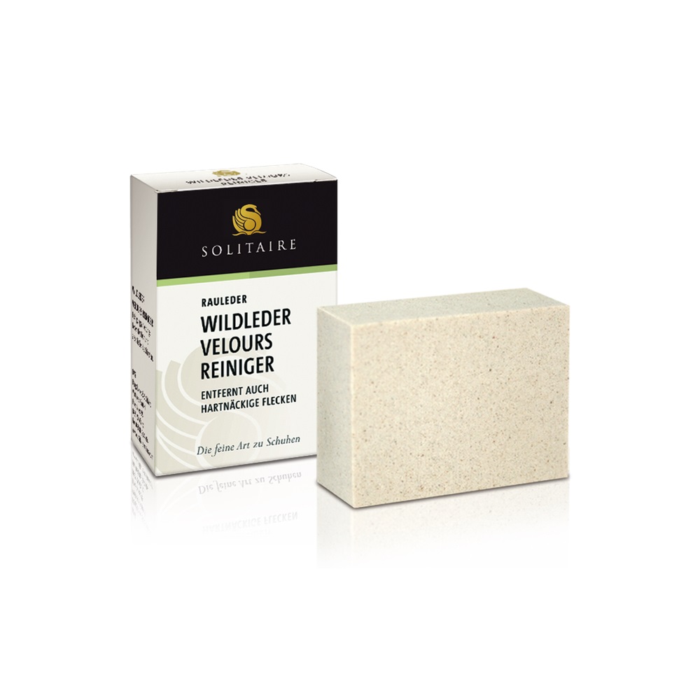 Шлифовальный ластик Solitaire стирает с замшевой кожи и нубука труднововодимые пятна и загрязнения. После удаления пятен замшу следует взъерошить специальной щёткой.