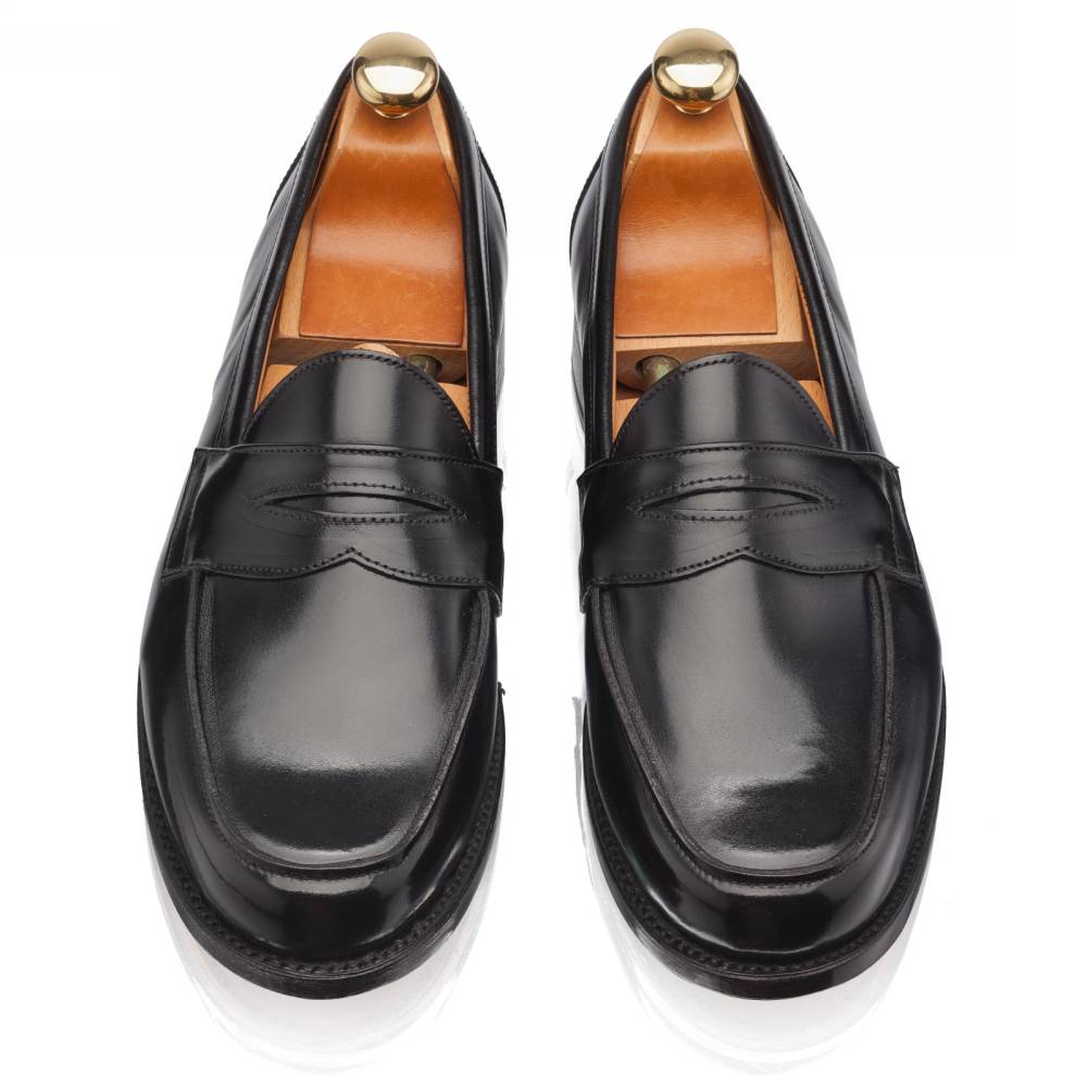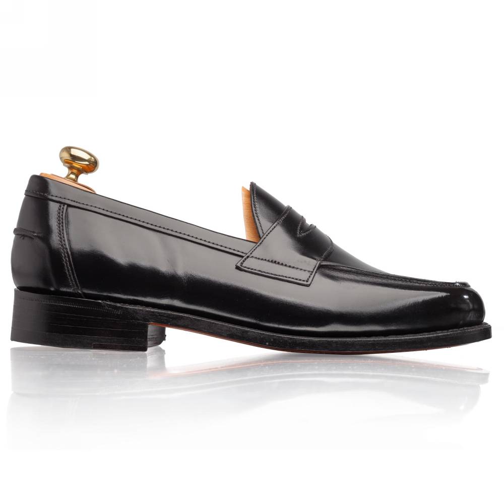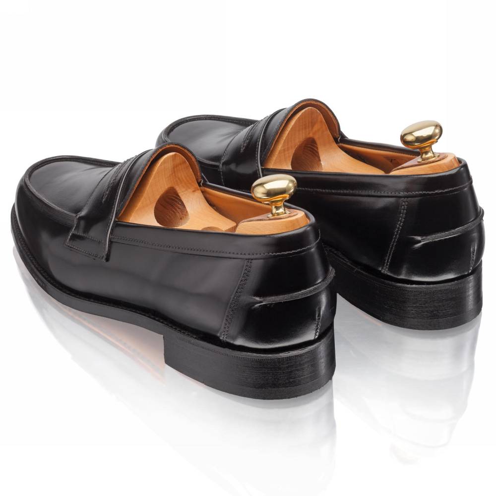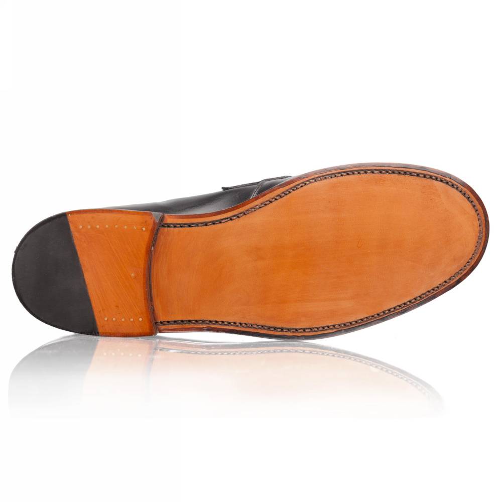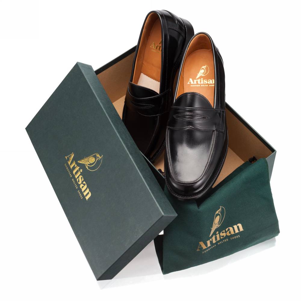 Традиционные мужские лоферы Artisan на кожаной подошве. Верх выполнен из гладкой телячьей кожи чёрного цвета. Внутренняя отделка из тонкой бежевой кожи растительного дубления. Область пятки с внутренней стороны с шероховатой поверхностью, чтобы стопа лучше фиксировалась. Конструкция Goodyear Welted.