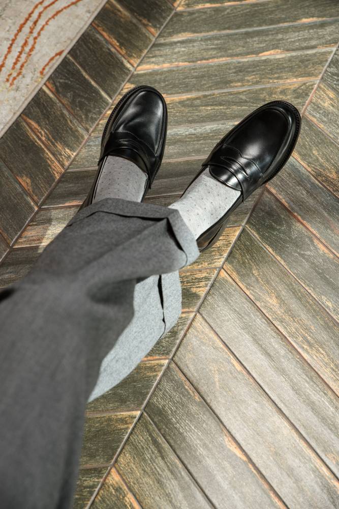 Пара создана в сотрудничестве с одной из старейших обувных фабрик Нортгемптона, английского региона, знаменитого на весь мир классической мужской обувью. В коллекции используется качественная телячья кожа, британская замша Charles F. Stead и резиновые подошвы Itshide. Checkroom с гордостью представляет эту коллекцию в своих магазинах в Москве и Санкт-Петербурге.