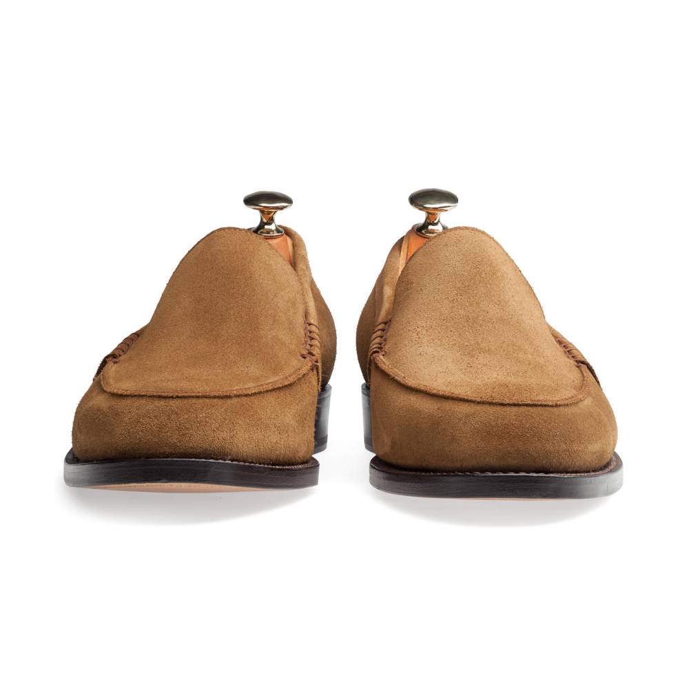 Лоферы хорошо подойдут для тёплой и сухой погоды и пеших прогулок. Эта модель сочетается с неформальным классическим гардеробом, хлопковыми, льняными брюками или джинсами. Модель сшита на колодке с плавными гладкими линиями. Круглый мыс, стандартная полнота. Такая обувь может подойти и для мужчин с широкой стопой, так как имеет достаточный объём в области подъёма.