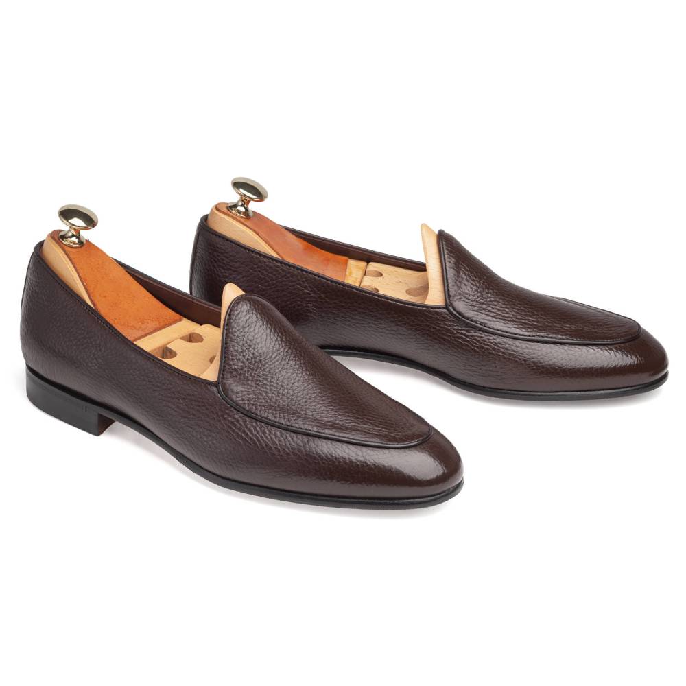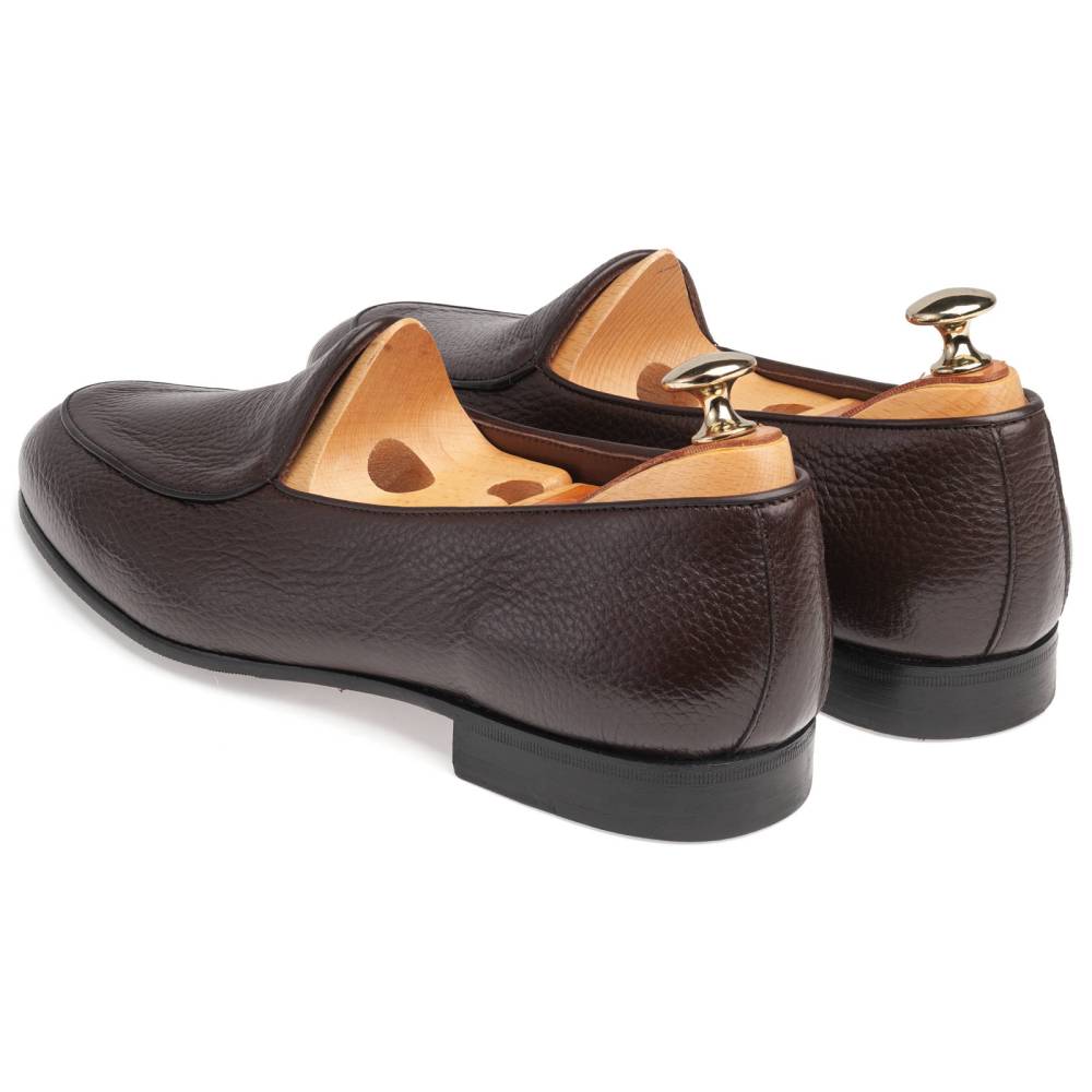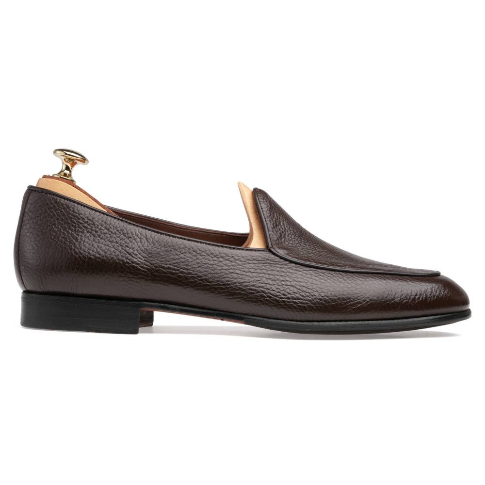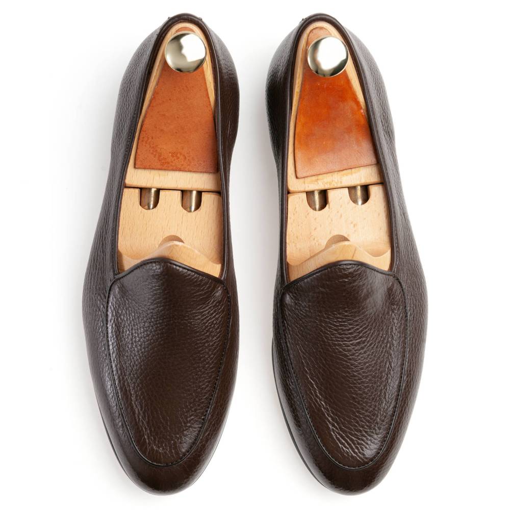 Лёгкие и лаконичные бельгийские лоферы Artisan на кожаной подошве с фирменной профилактикой из резины. Верх выполнен из тёмно-коричневой оленьей кожи, которая не только обладает узнаваемой фактурой, но и славится своей мягкостью. Внутренняя отделка выполнена из тонкой телячьей кожи в тон верху. Область пятки с внутренней стороны из замши. Конструкция Blake.