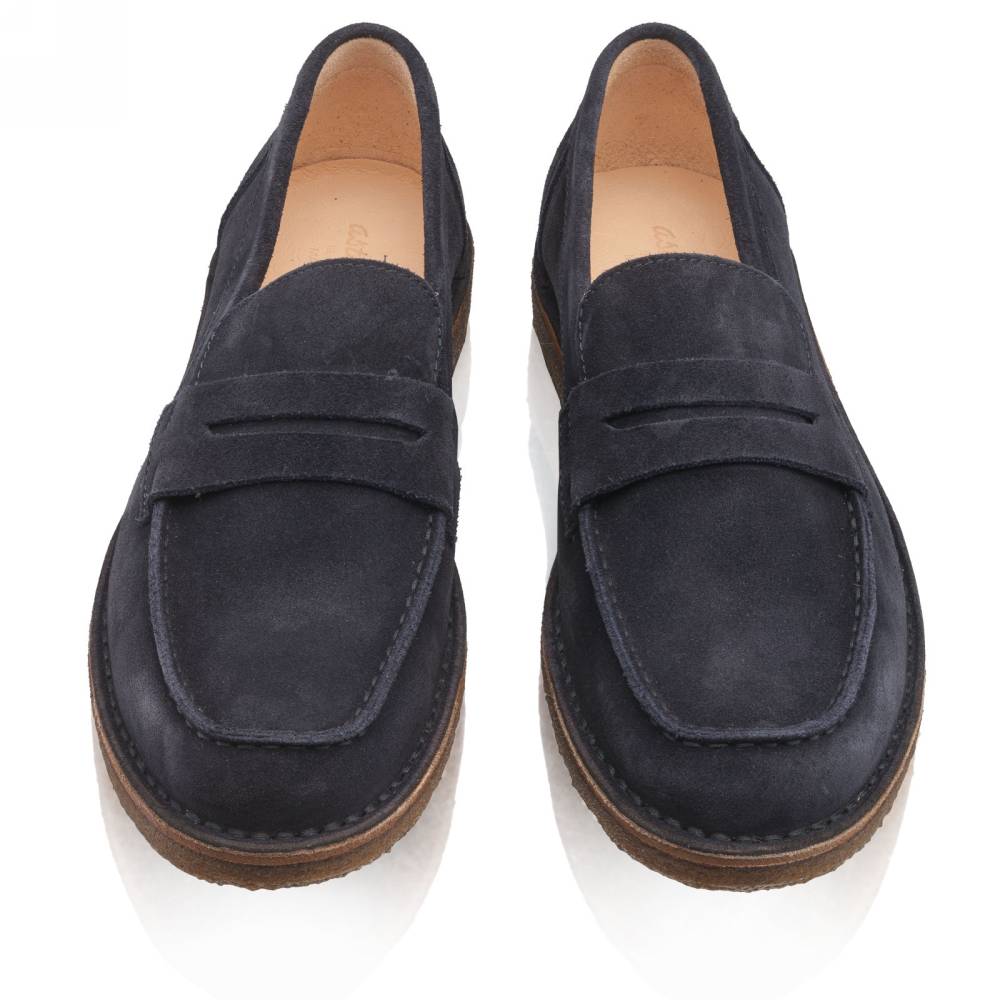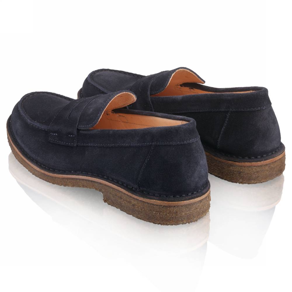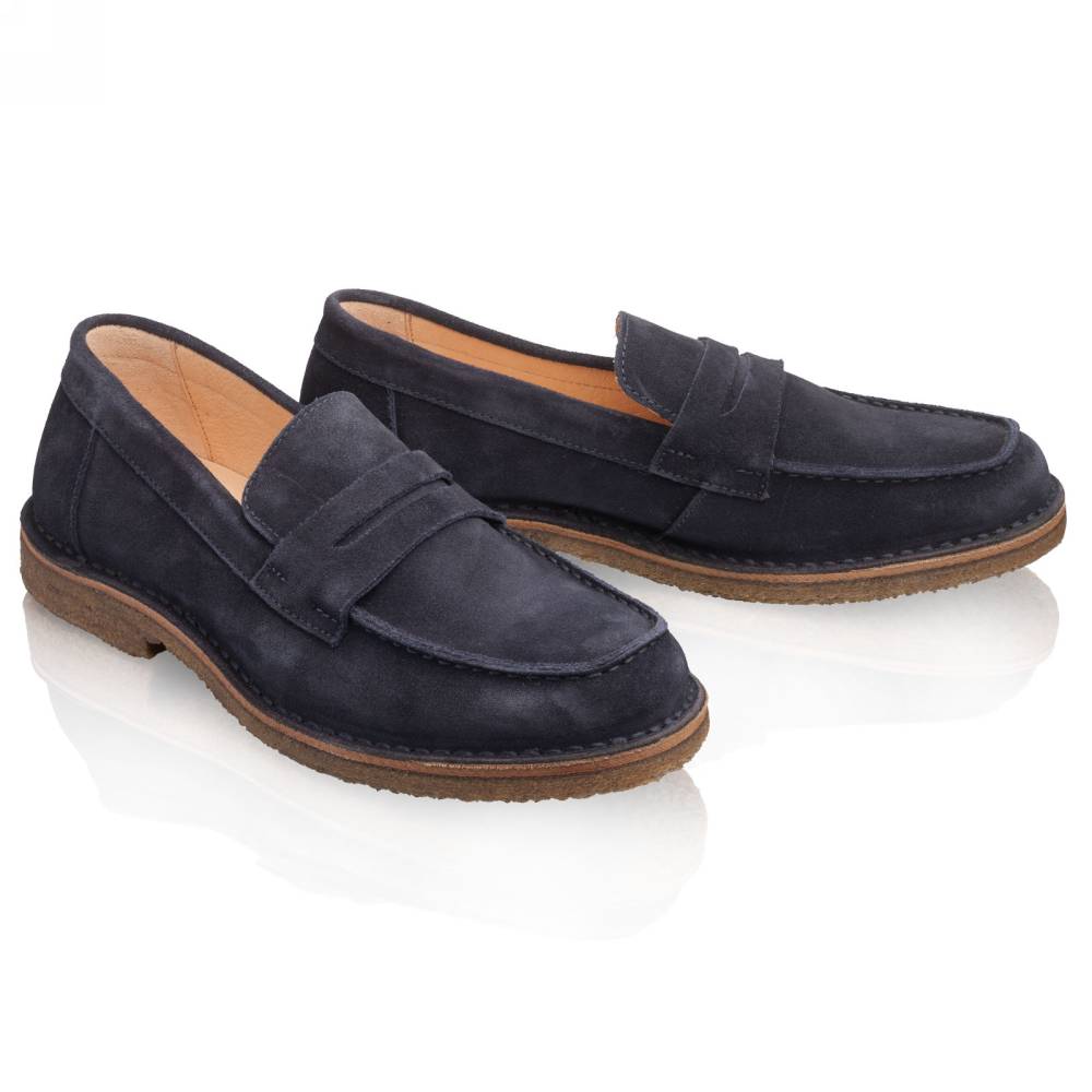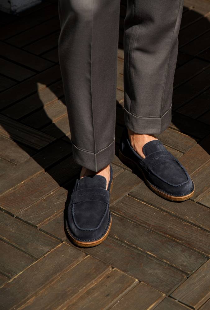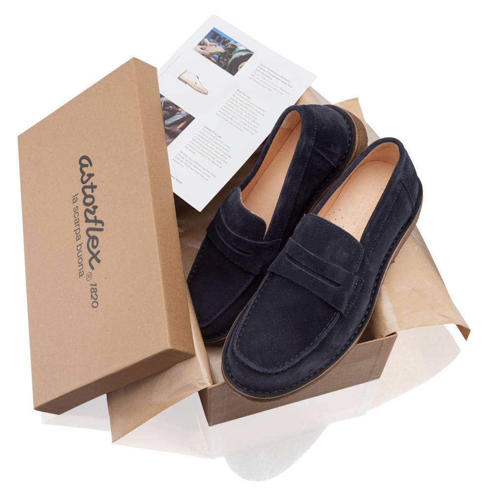 Удобные летние лоферы итальянского бренда Astorflex с узнаваемым мокасинным швом в передней части. Верх выполнен из плотной замши тёмно-синего цвета. Модель имеет облегчённую подкладку из кожи растительного дубления. Внутри - мягкая съёмная стелька из кожи с пористым слоем. Характерной собенностью лоферов является гибкая и упругая подошва из натурального каучука. Обувь сшита в прочной влагостойкой конструкции stitch-down (доппельный метод крепления).
