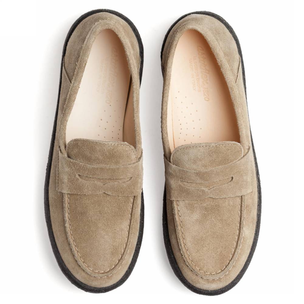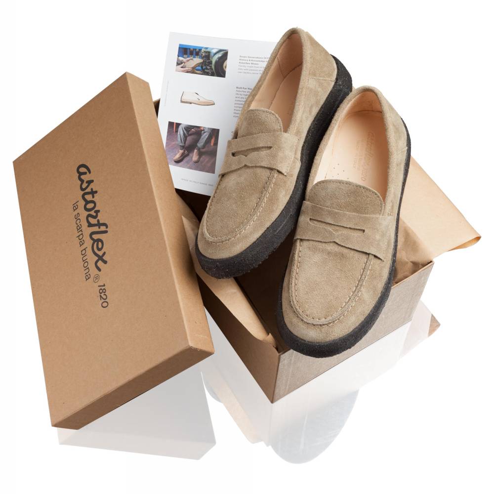 Универсальные пенни-лоферы Astorflex оригинального дизайна с контрастной чёрной подошвой. Верх выполнен из высококачественной итальянской замши. Подкладка из кожи растительного дубления, которая обладает гипоаллергенными свойствами, превосходно абсорбирует влагу и моментально высыхает. Модель имеет съёмную стельку из кожи и пены с эффектом памяти (memory foam). Подошва округлой формы из натурального каучука.
