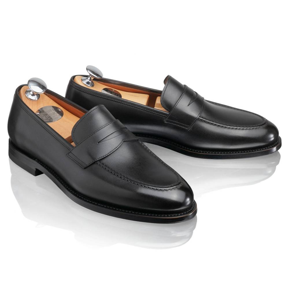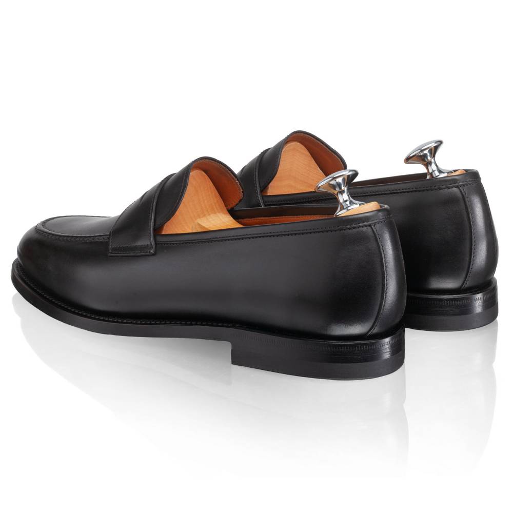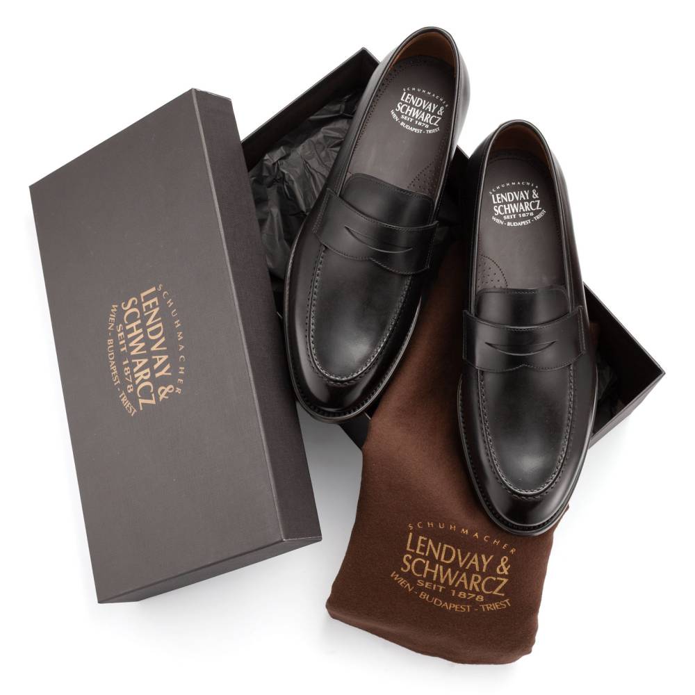 Сдержанные пенни-лоферы Lendvay & Schwarcz выполнены из высококачественной итальянской телячьей кожи чёрного цвета. Модель на гибкой и лёгкой конструкции Blake Rapid, что обеспечивает комфорт с первых дней ношения. Кожаная подошва дополнена заводской резиновой профилактикой для лучшего сцепления и надёжной защиты от влаги.